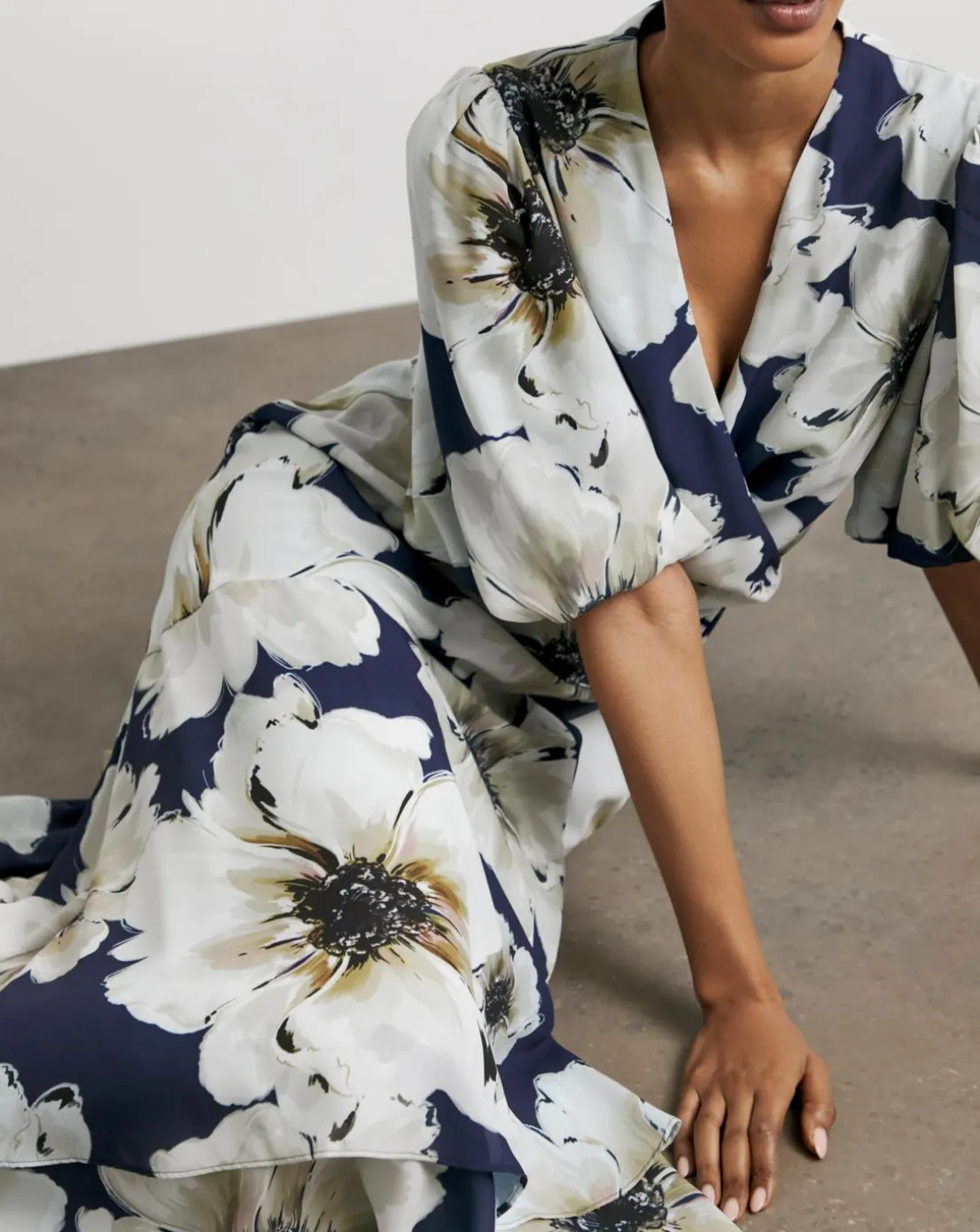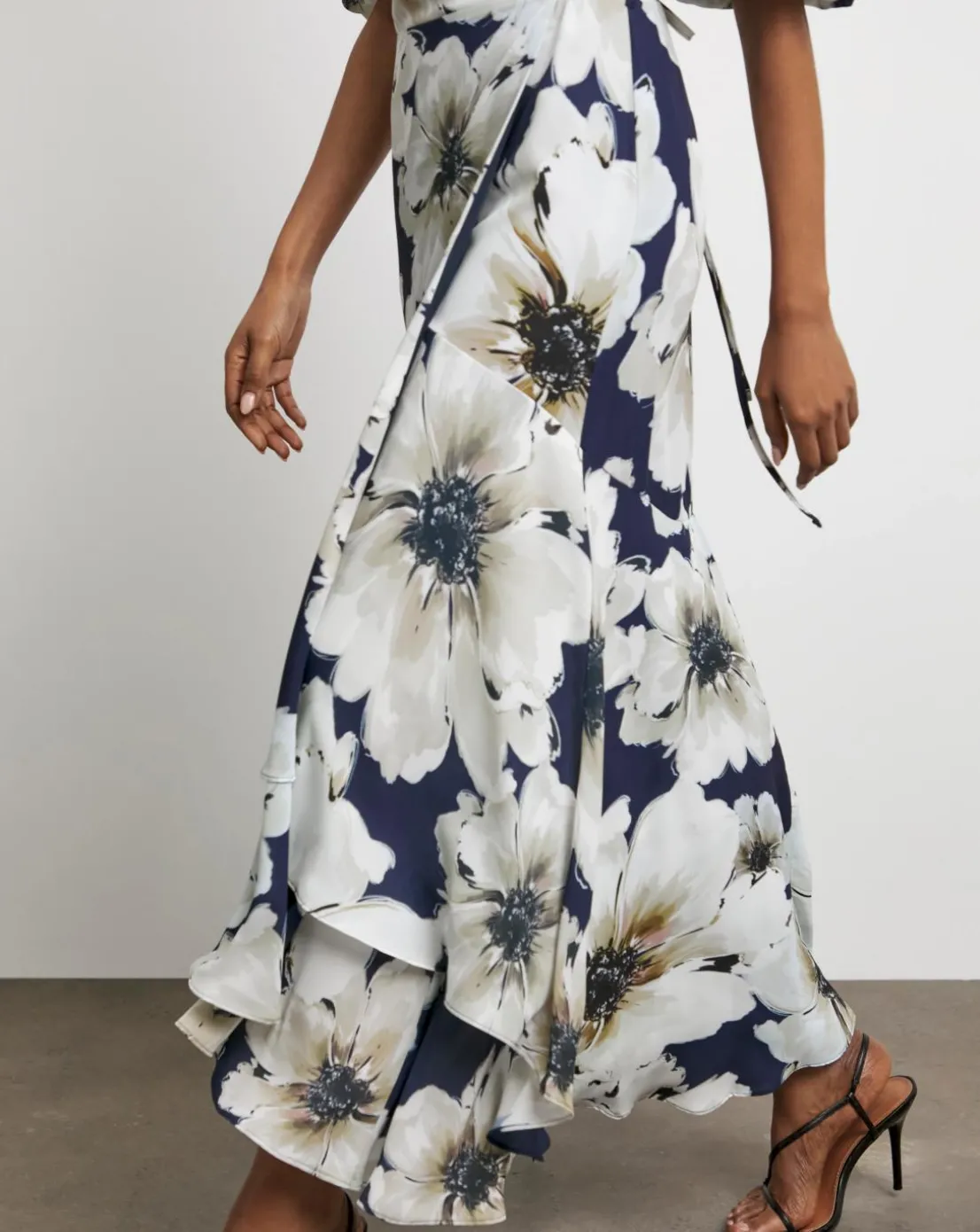 Crafted in a floral print, this puff sleeve dress with wrap detailing is the perfect way to elevate your outfit for an upcoming special occasion such as a wedding guest or the races. The dress features puff sleeves, v neckline, wrap detailing, high-low hemline and a maxi length 52 inches.