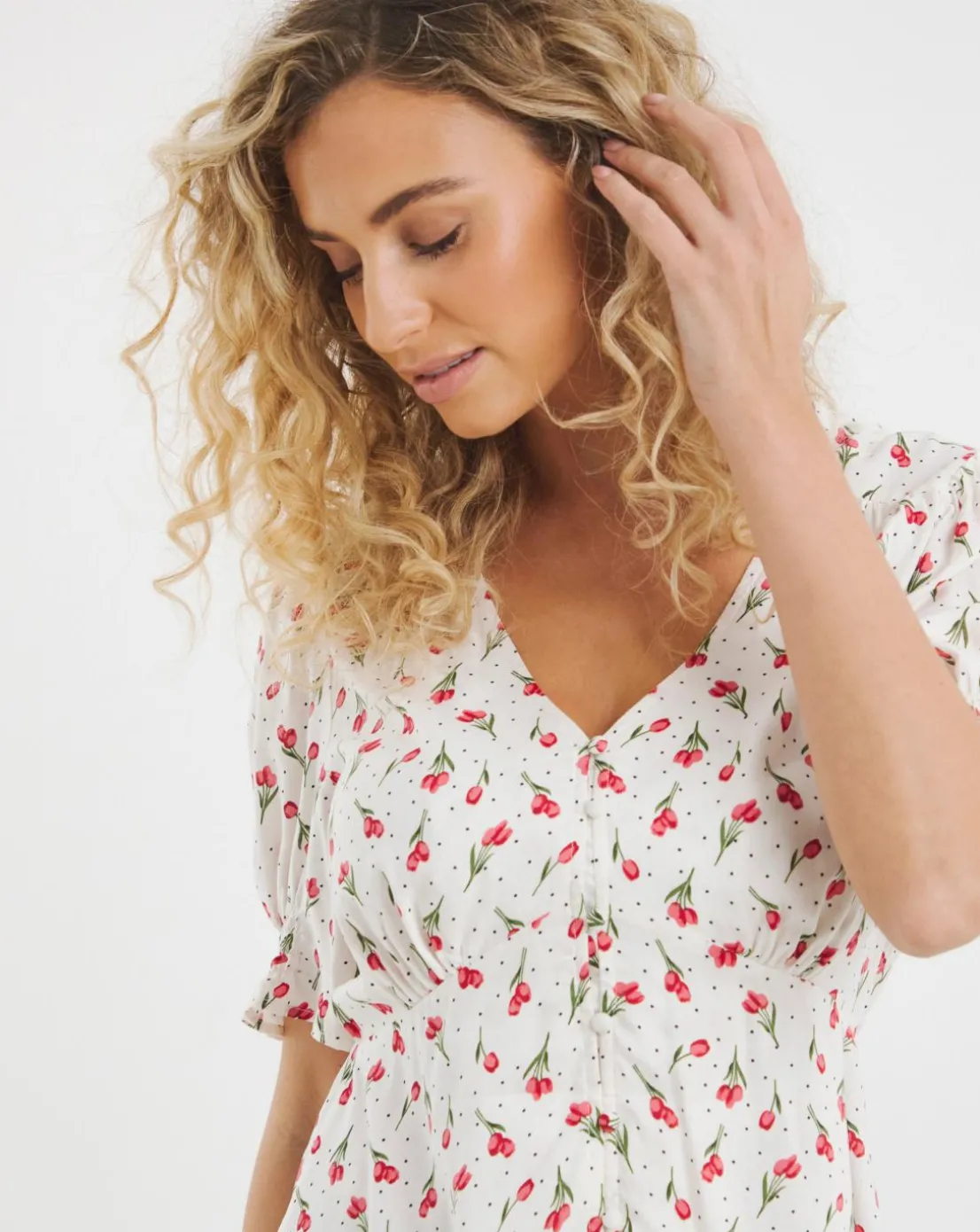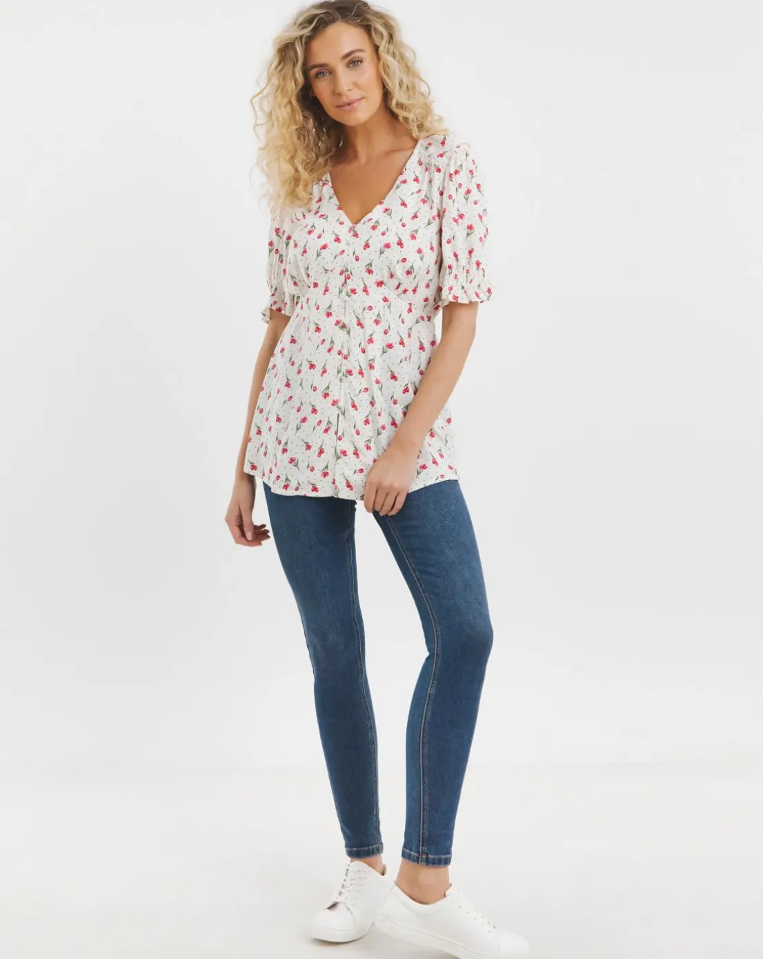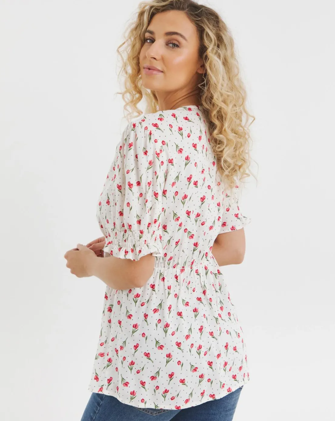 This pretty floral blouse is a must-have piece for your wardrobe. With its ditsy flower print on a white base, this blouse with beautiful feminine detail is the perfect piece to complete any outfit.