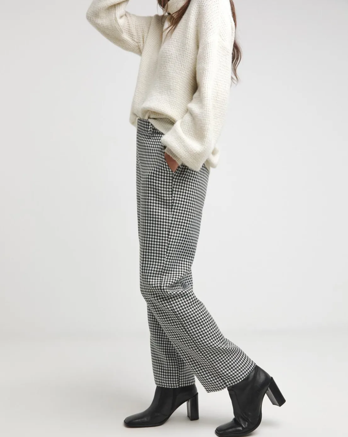 Our gorgeous houndstooth trousers really bring timeless style and a classic design together. Taking a high-rise, wide-leg shape that accentuates all the right areas, we added a chic monochrome pattern that gives them a real wow factor. Equal parts retro and on-trend, there are so many ways you can style these stunning trousers.