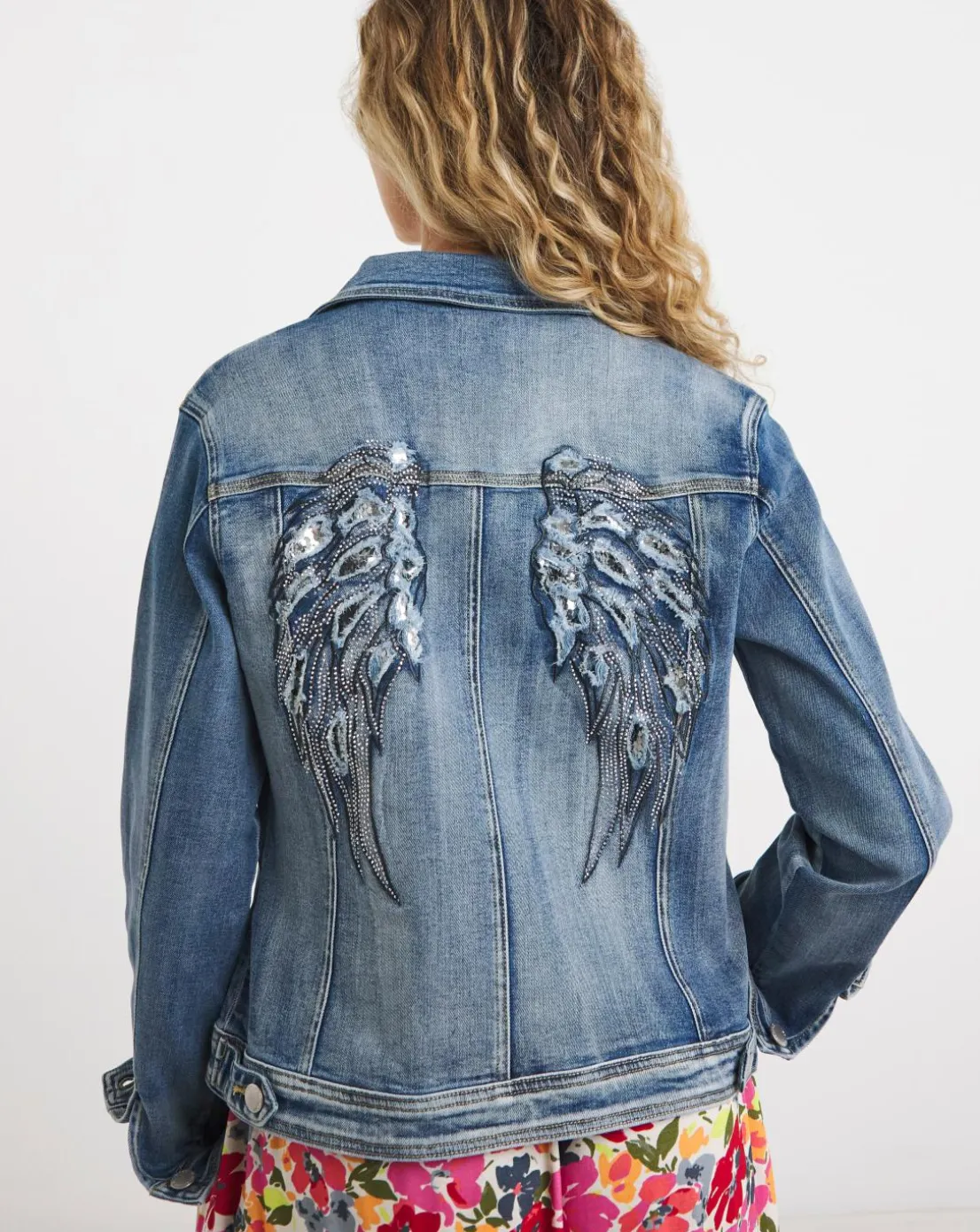 From our boutique range, we’ve taken our best-selling denim jacket and elevated it to another level. From the front, it’s the same fit, shape and design that you know and love, but we’ve added the most amazing applique, sequin and embroidery detail to the back in the shape of angel wings. The result? A stunning customised look that’ll bring out your unque style for spring and summer.