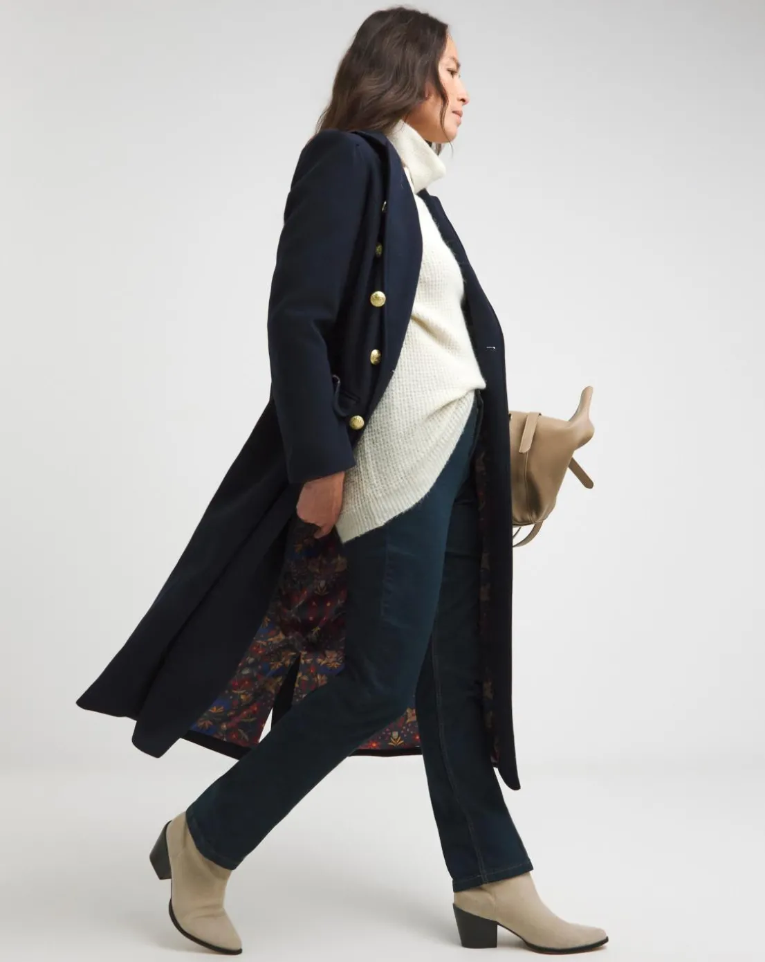 Our statement military coat is designed to make an impact. Sharp yet chic, it’s perfectly tailored in a double breasted design and finished with classic buttons for that authentic touch. The perfect fit for you and your winter style, it’s a real must-have this season.