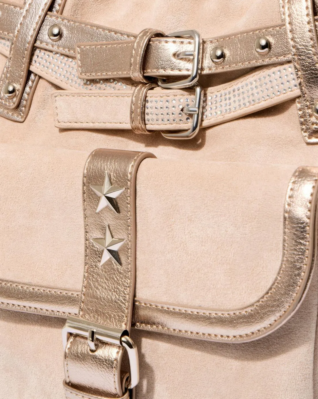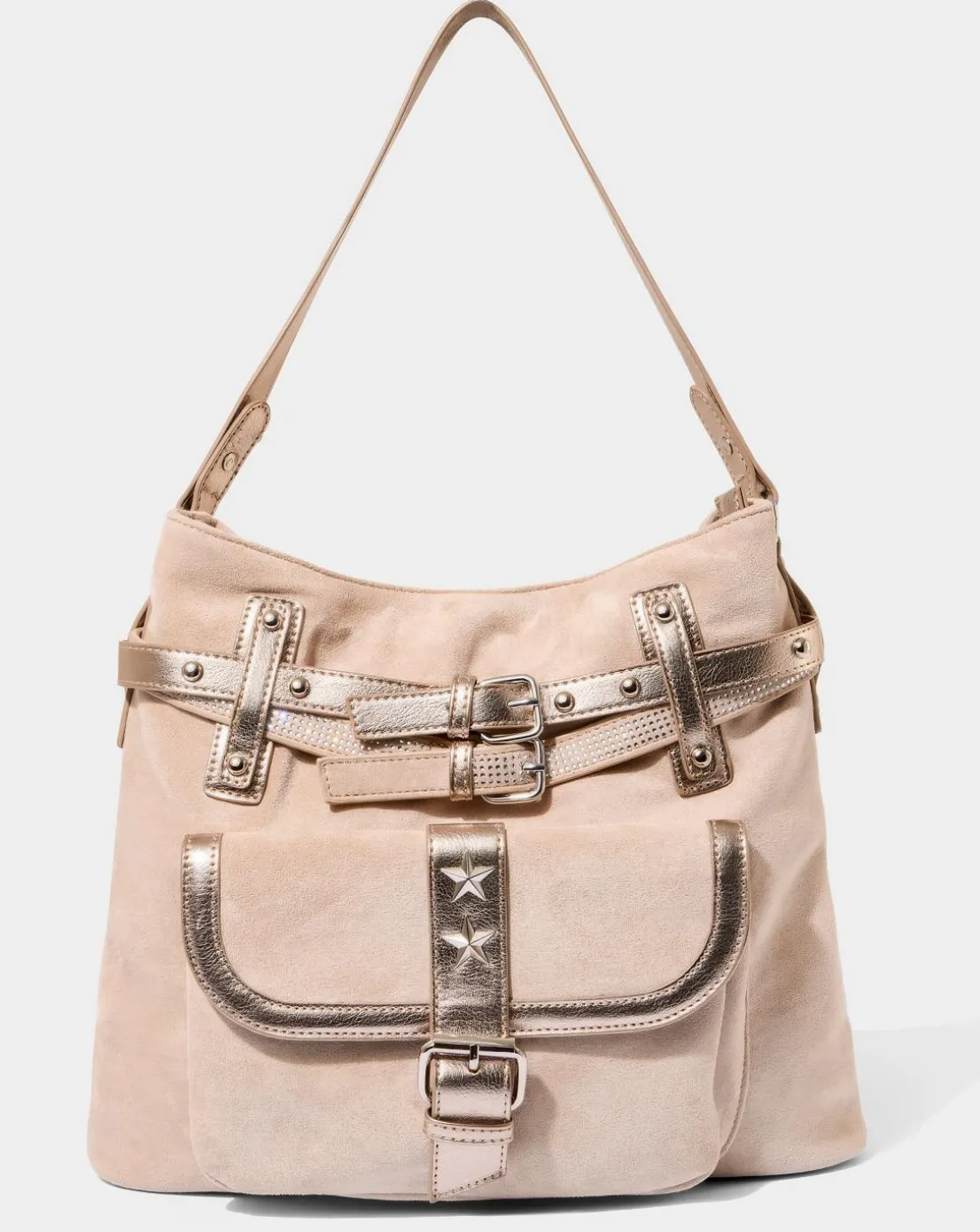Packed with detail, casual chic comes easy with this microsuede slouchy shoulder bag.
