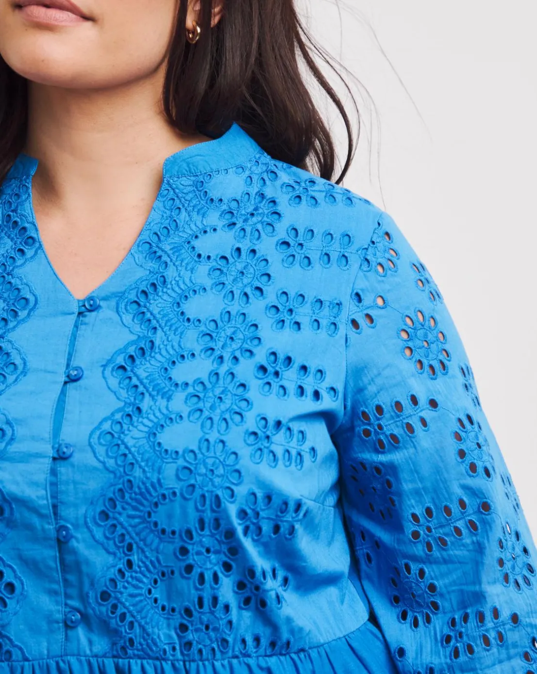 Featuring fluted sleeves, a mandarin collar and tiered skirt, this delicate piece is full of our favourite style details. Just add jeans or shorts to step out looking pretty in this broderie cotton tunic.