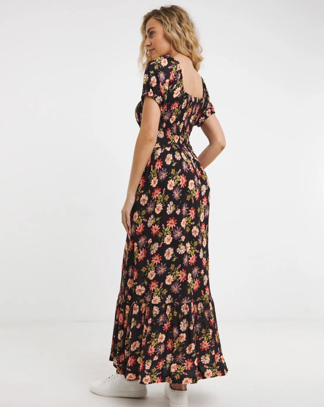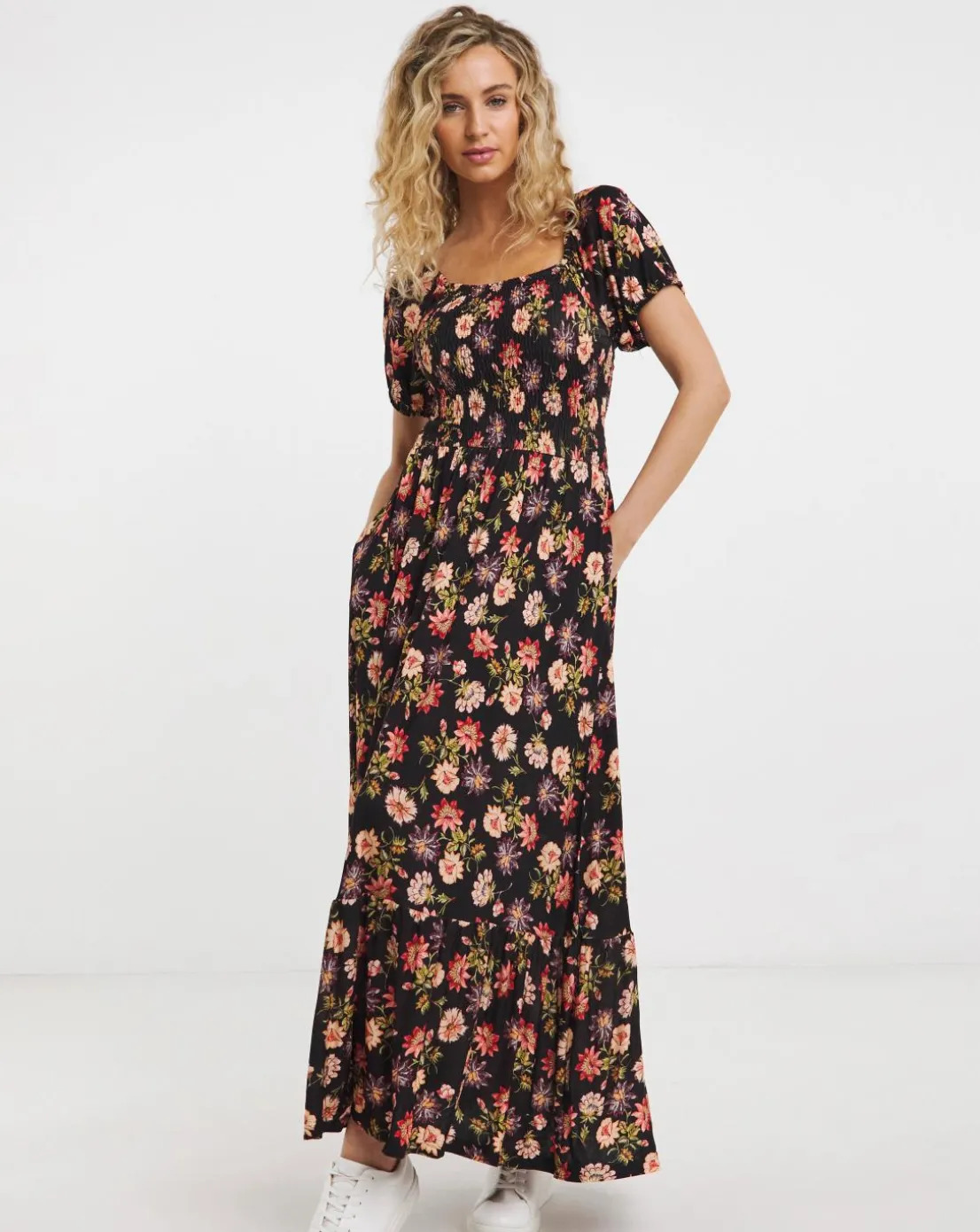 Every spring wardrobe needs the perfect maxi floral dress and this one is about to become your new seasonal favourite. Combining a stunning feminine design with subtle details, we added puff sleeves, a shirred bodice and tiered skirt to bring those all important finishing touches.