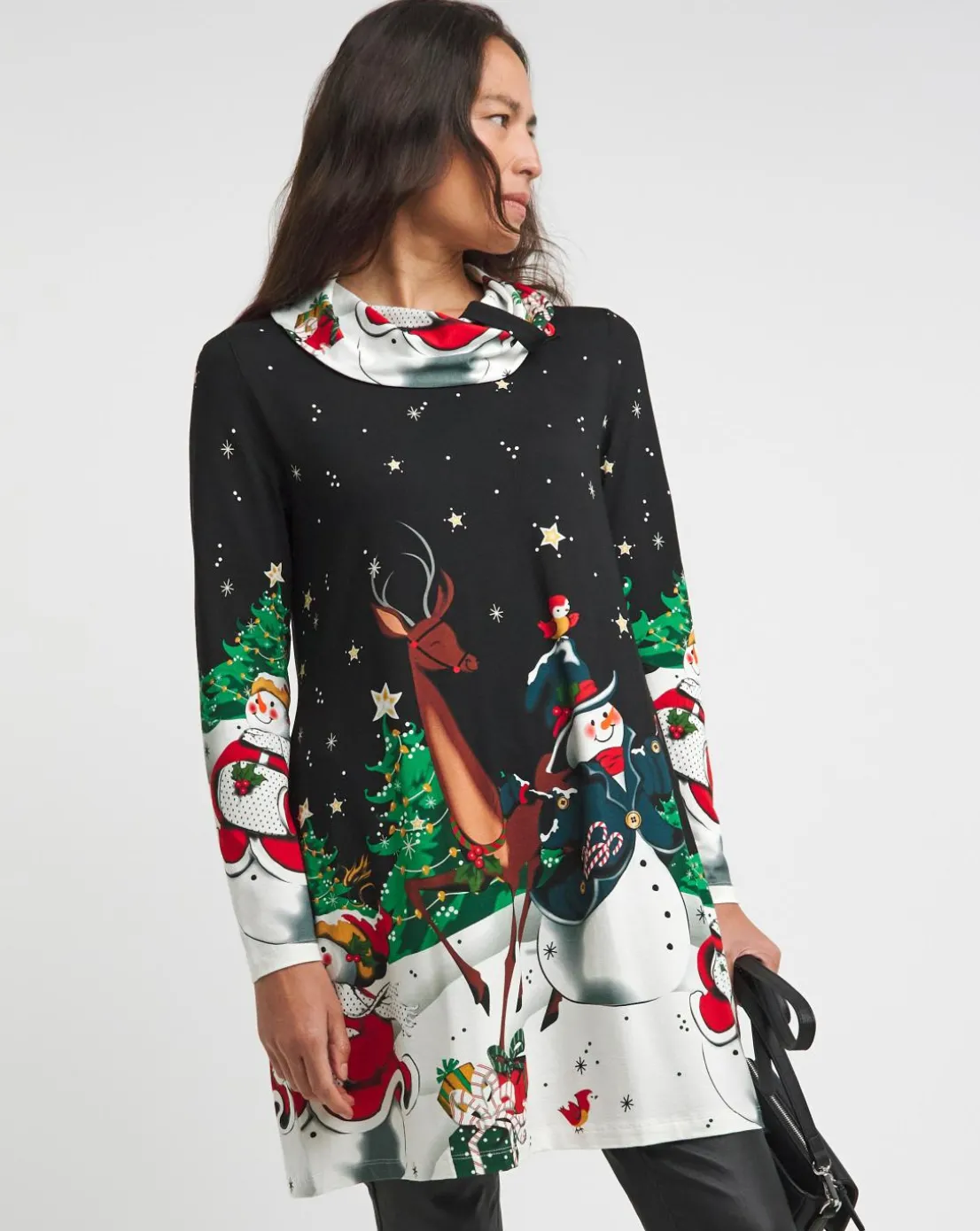 Looking for the perfect Christmas top? Just pull on our Winter Wonderland Tunic to instantly feel festive. Warm, comfy and so easy to wear, it’s the ultimate Christmas morning top and an essential this winter. It’s the stunning festive forest scene that’ll put you in the mood for unwrapping presents and tucking into a turkey dinner.