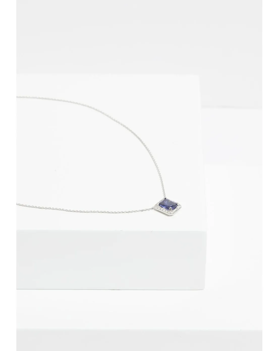 - Jon Richard Rhodium Plated Cubic Zirconia Emerald Cut Sapphire Pendant