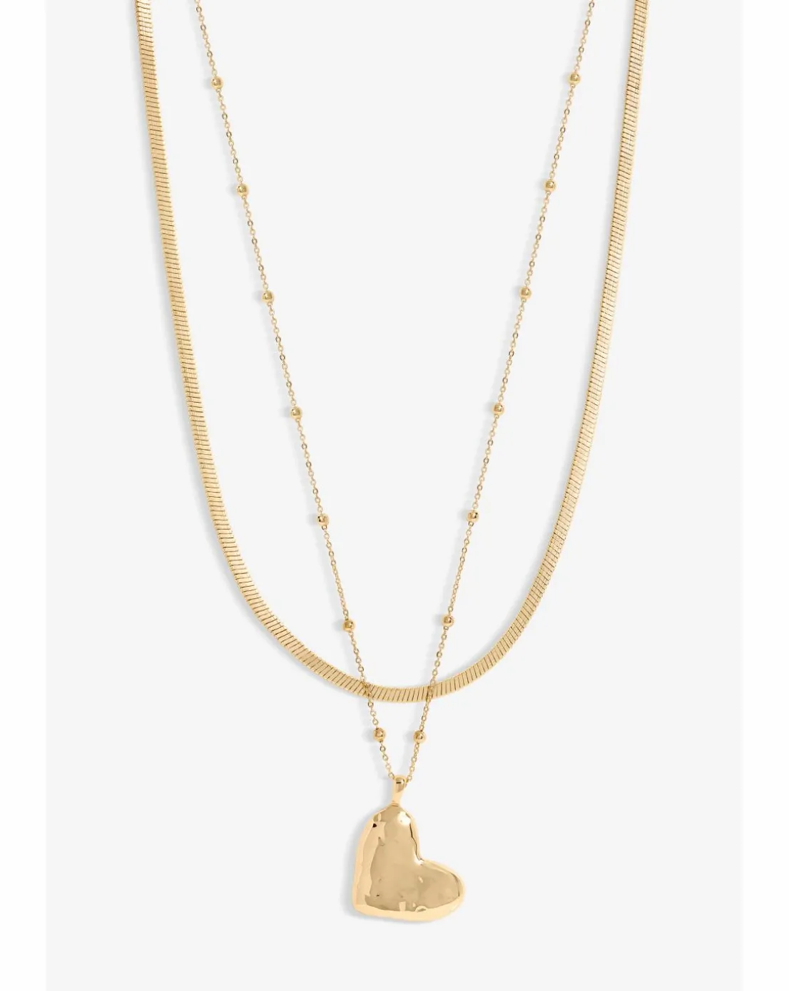 - Our Jon Richard Gold Plated double Row Molten Heart Necklace features two elegant rows of gold Plated chain, with a striking molten heart pendant at the center. Its modern, textured design adds a touch of warmth and romance, making it a perfect accessory for special occasions or everyday wear.