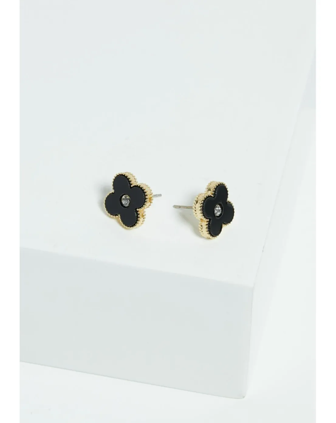 - Our Jon Richard Gold Plated Jet Enamel Clover Stud Earrings combines modern style with a touch of sophistication. Featuring a clover-shaped design with bold jet enamel accents set in gold plating, these stud earrings add a pretty and timeless elegance to any outfit, perfect for both everyday wear and special occasions.