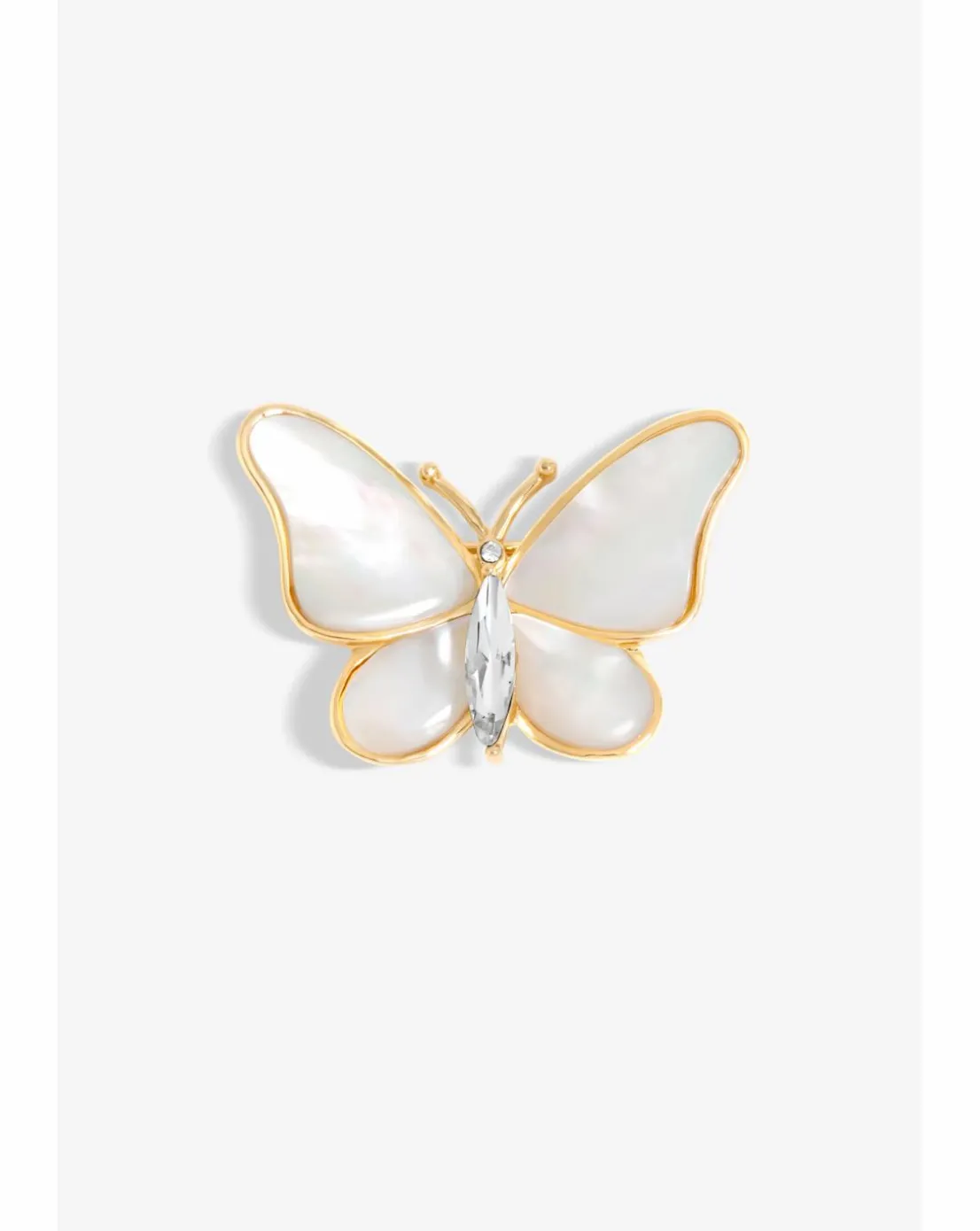 - Our Jon Richard Gold Plated Mop Butterfly Brooch is a must-have in your jewellery box this season. This gorgeous nature inspiredesign if perfect for addingepth to your outfit. Presented in a beautiful Jon Richard gift box, this brooch is the perfect gift for yourself or a loved one.