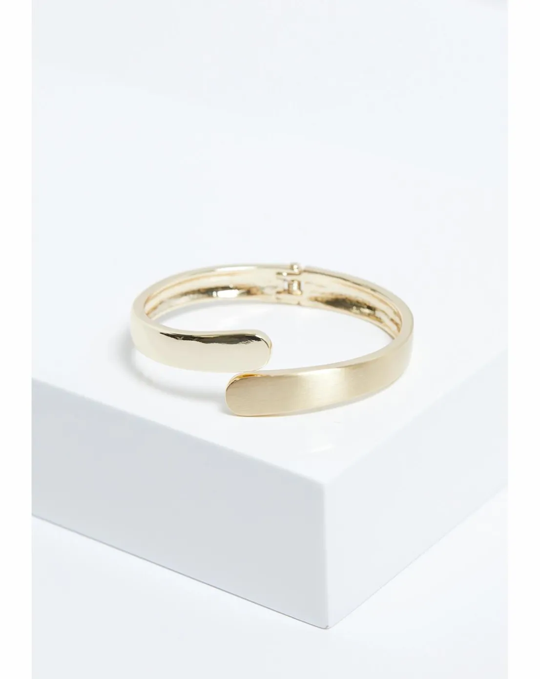 - Our Jon Richard Gold Plated Polished And Satin Open Hinge Bangle is a beautiful piece with contemporary design. Perfect for both everyday elegance and special occasions, this bangle can be worn alone for a subtle statement or stacked with other pieces for a layered look. A versatile and timeless addition to your jewellery collection.