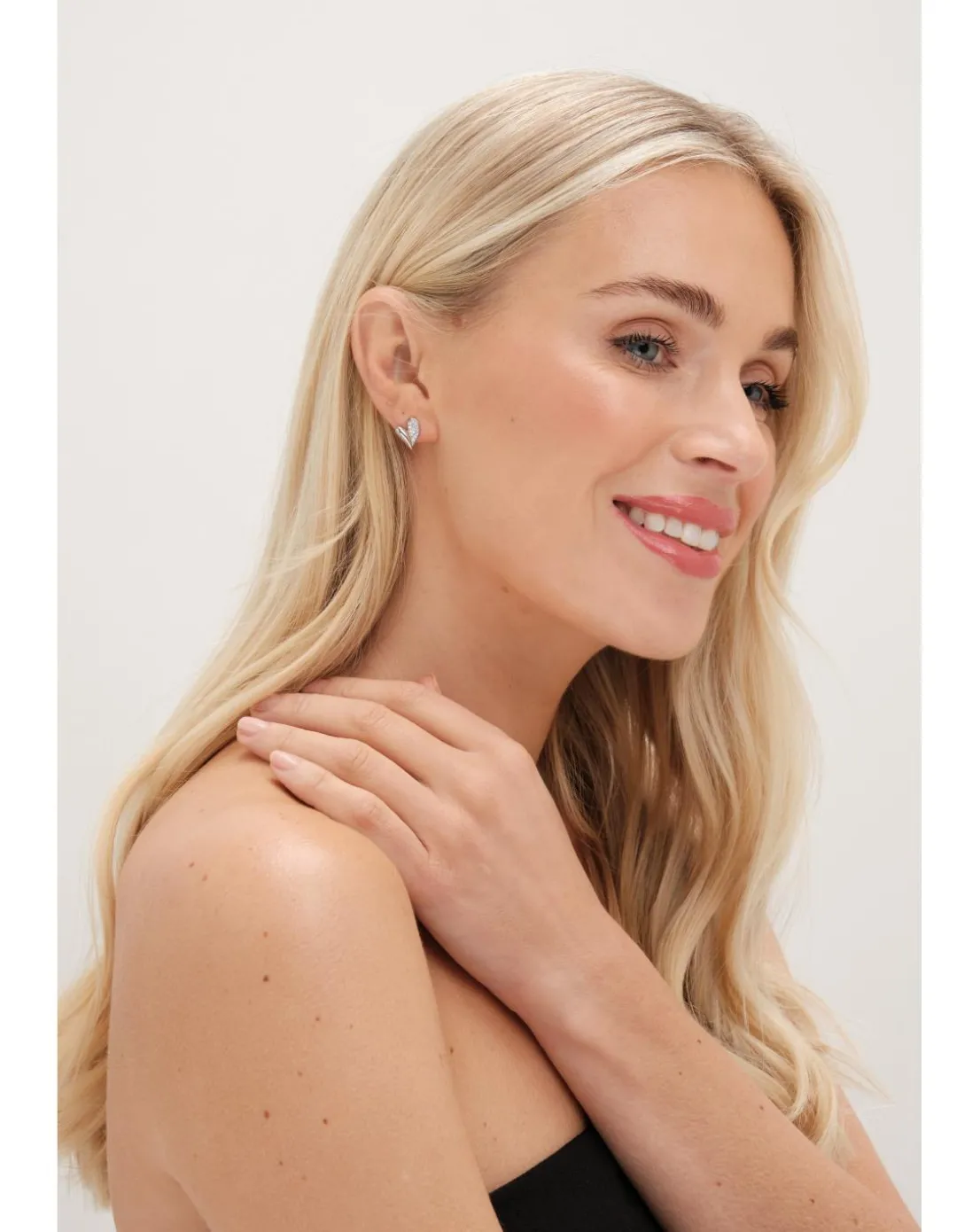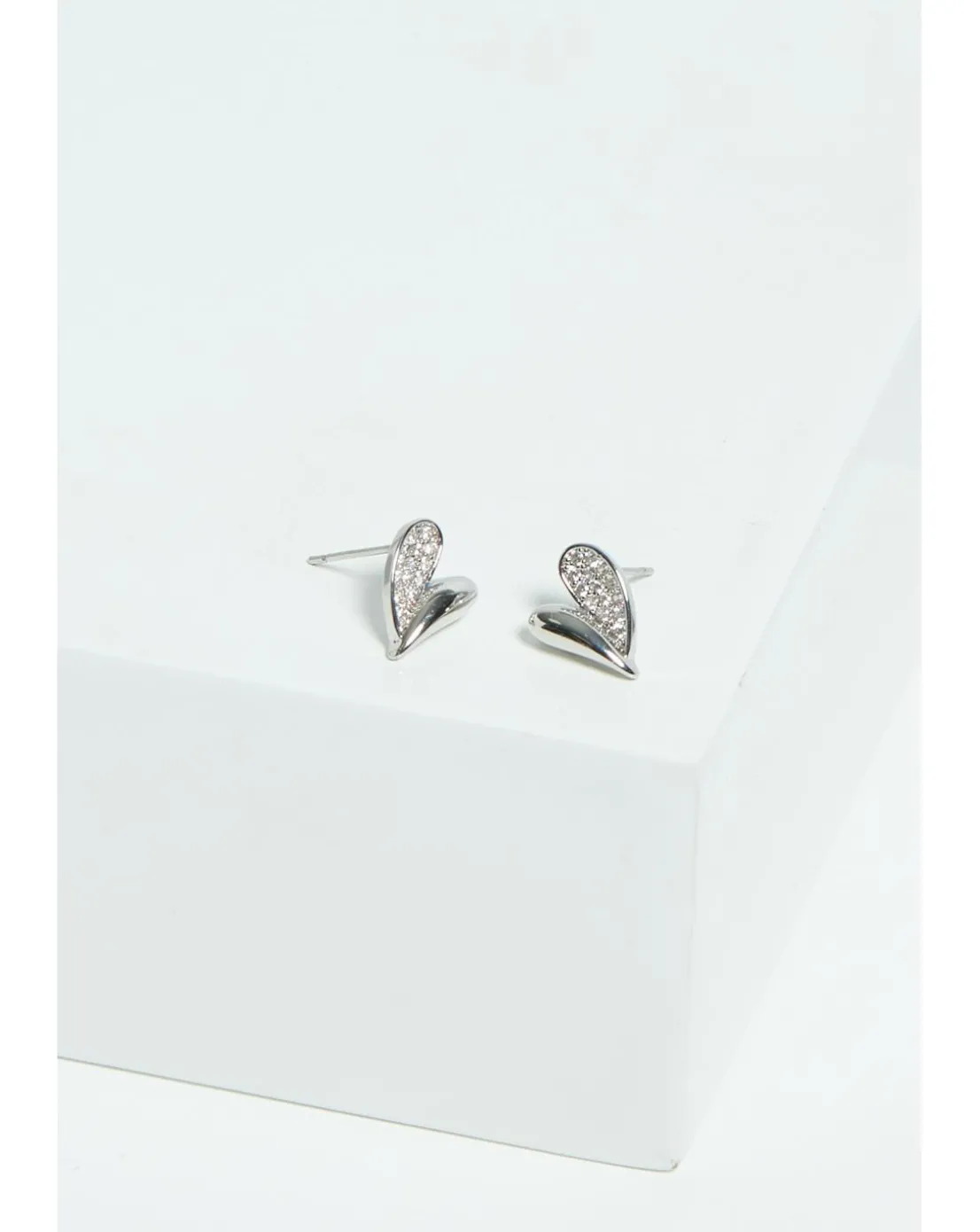 - Jon Richard Rhodium Plated Cubic Zirconia Heart Stud Earrings