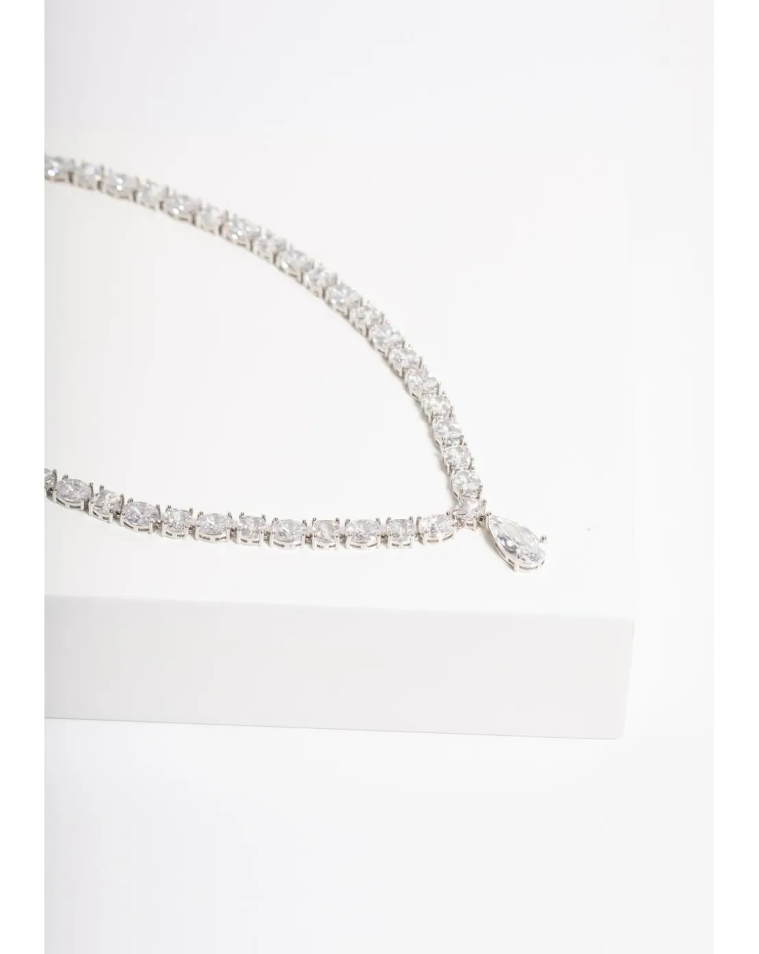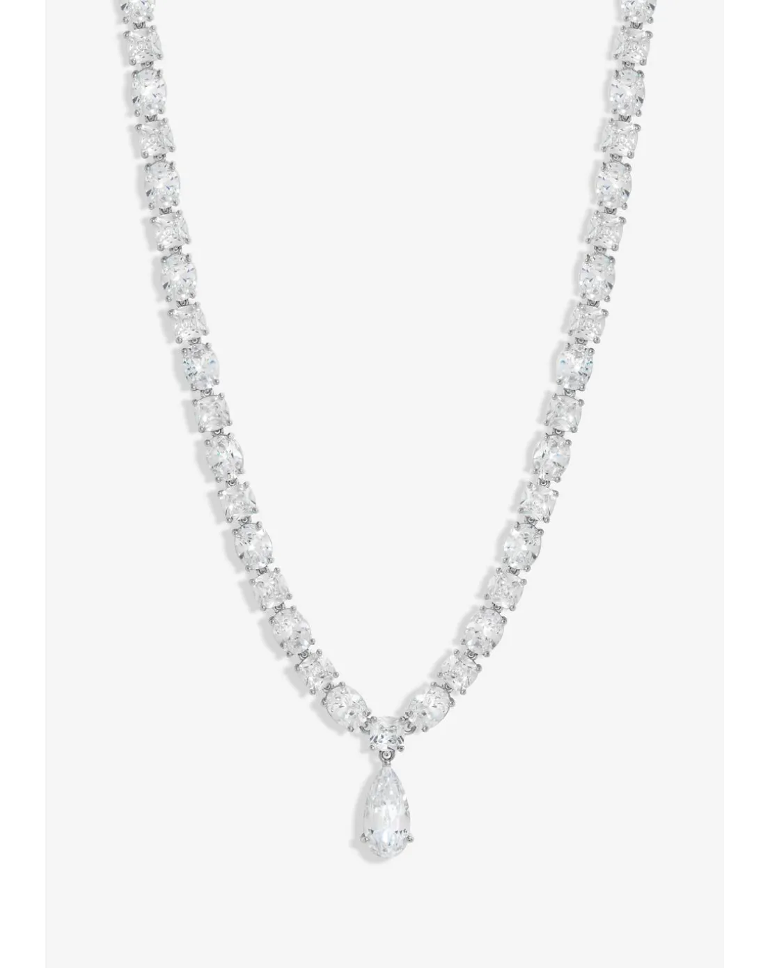 - Jon Richard Rhodium Plated Cubic Zirconia Mixed Stone Peardrop Allway Necklace