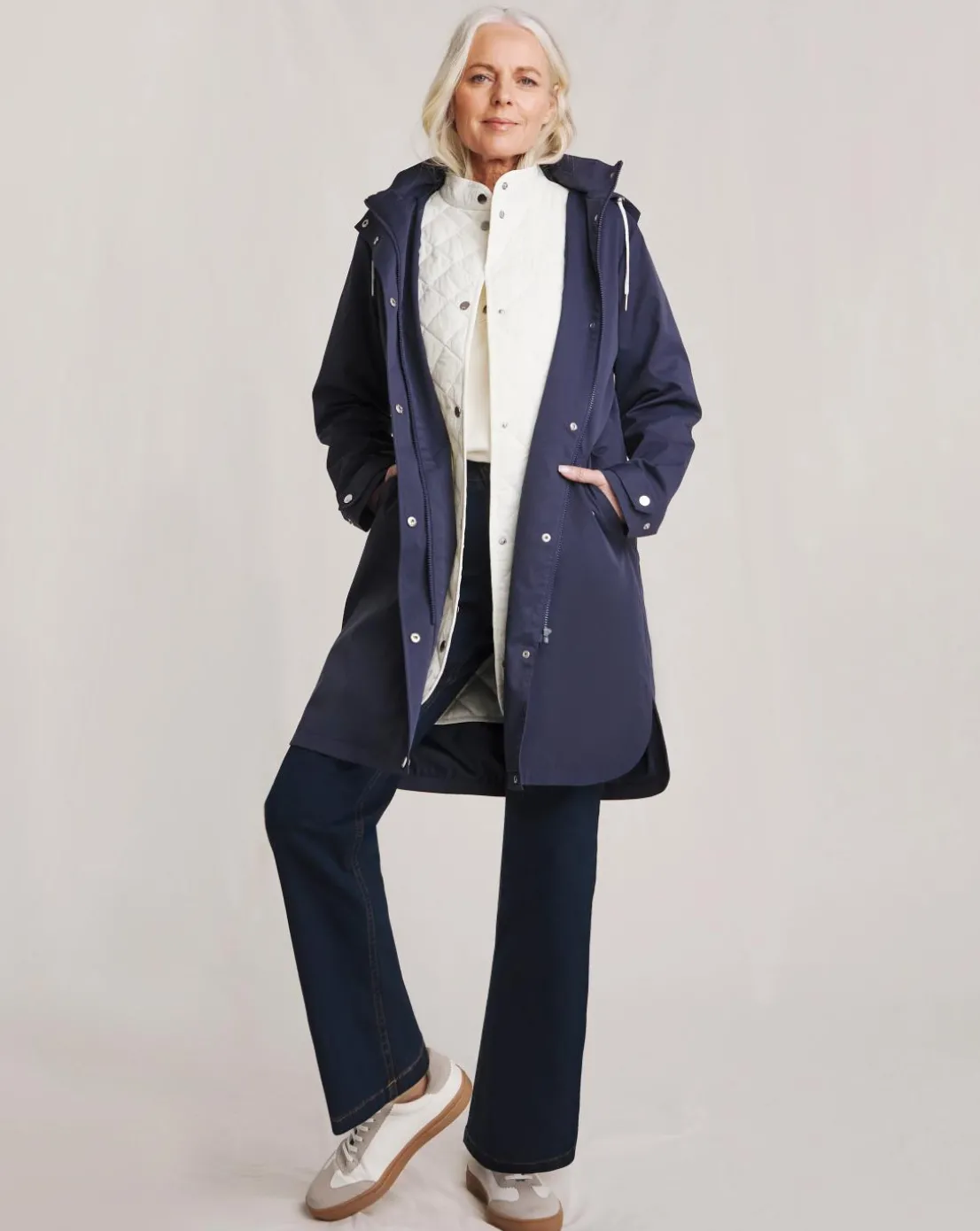 This is the only coat you need this season! The 2 in 1 design gives you a gilet and a raincoat, making it the perfect versatile piece. Featuring soft cosy quilted gilet, navy raincoat, wear as separates or layer both together. The coat is also perfectly finished with popper and zip fastening, and stripe hood detail.