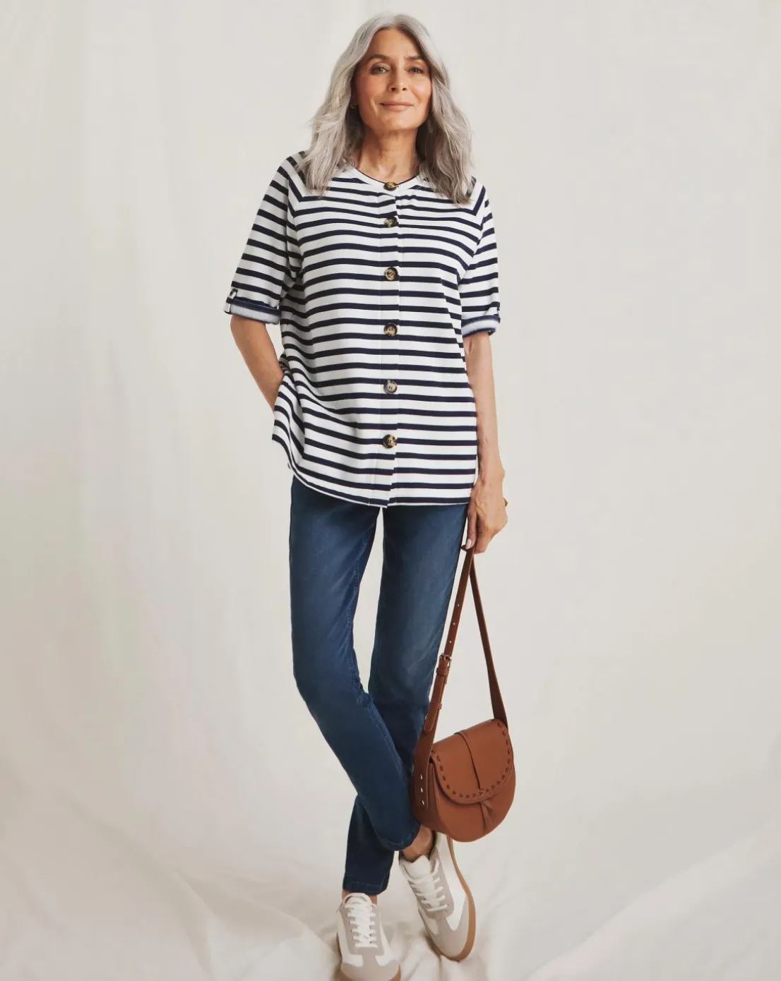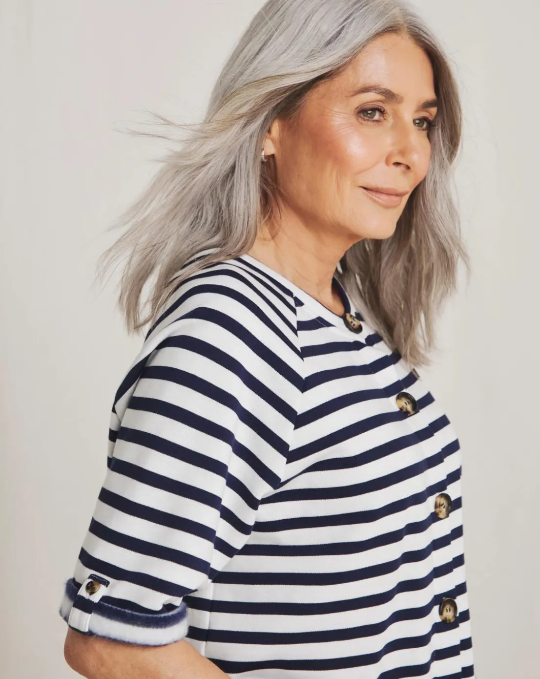 This versatile striped top can be worn three ways making it the perfect staple piece in your wardrobe. Complete with button fastenings and three-quarter length sleeves. Made with BCI cotton; by choosing our cotton products, you are supporting Julipas investment in Better Cottons mission. This product is sourced via a system of mass balance and therefore may not contain Better Cotton.