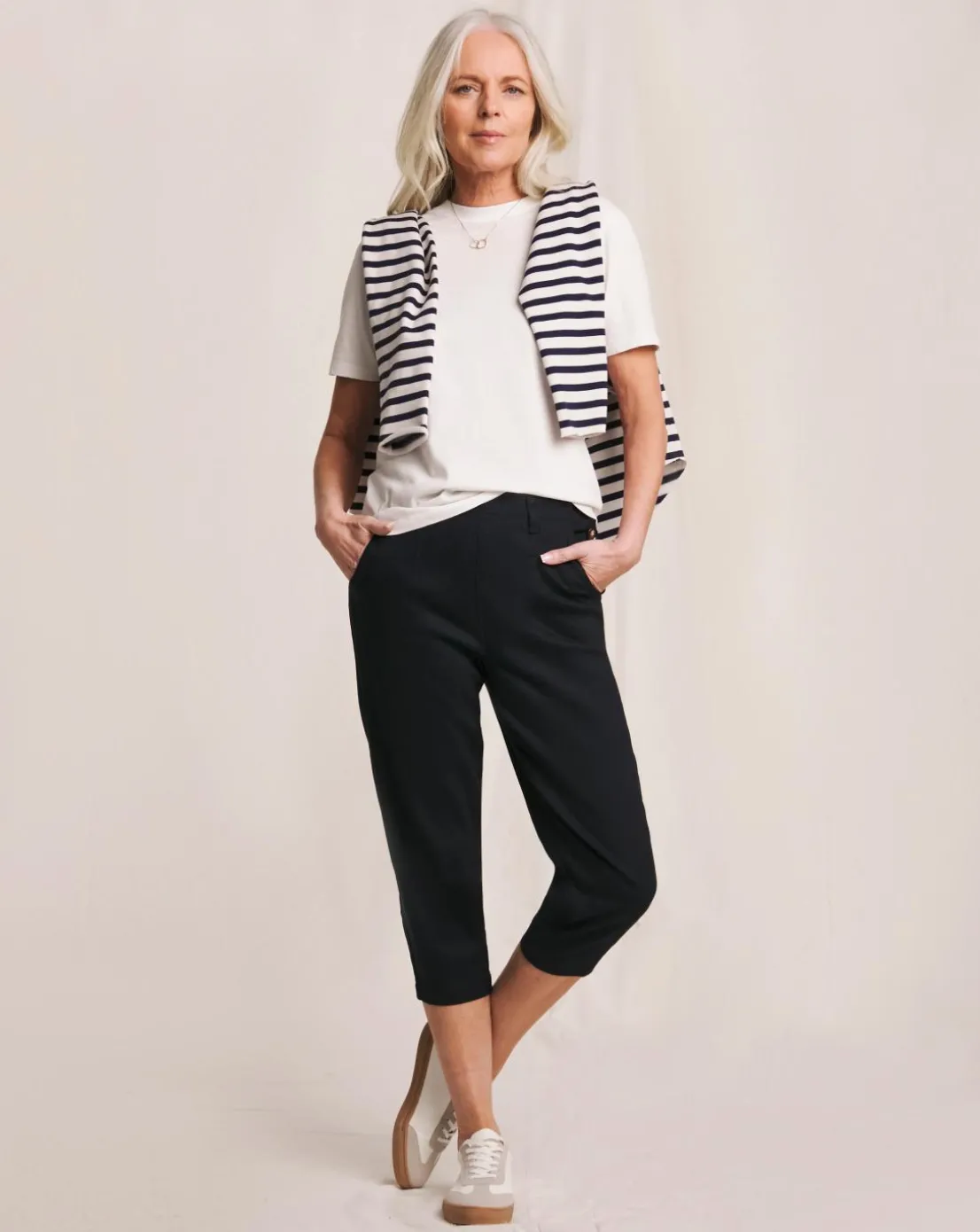 Our soft stretch crop trouser is the only trouser you need this spring summer. Featuring flattering crop length, side button detail, soft cotton stretch fabric, turn up hem.