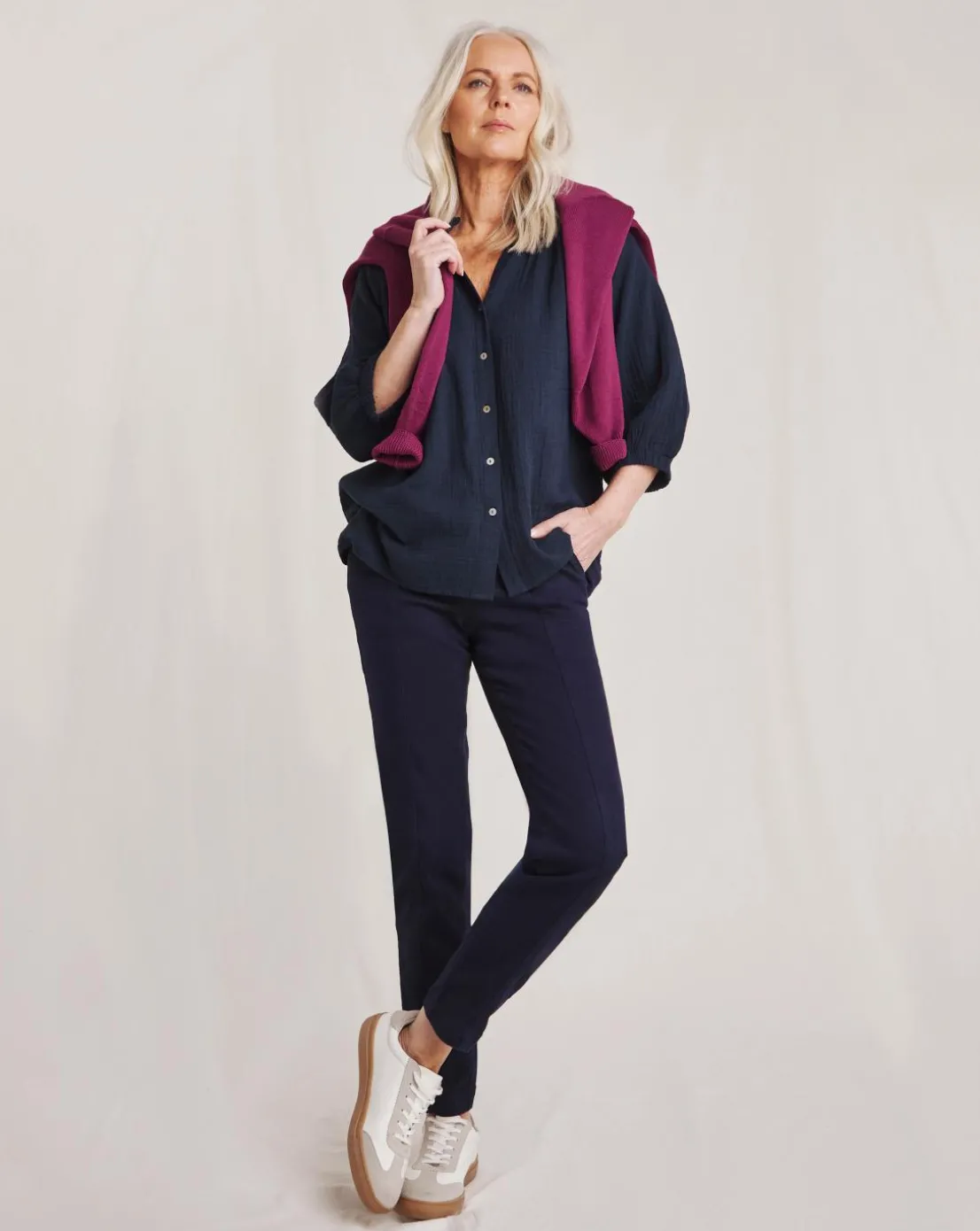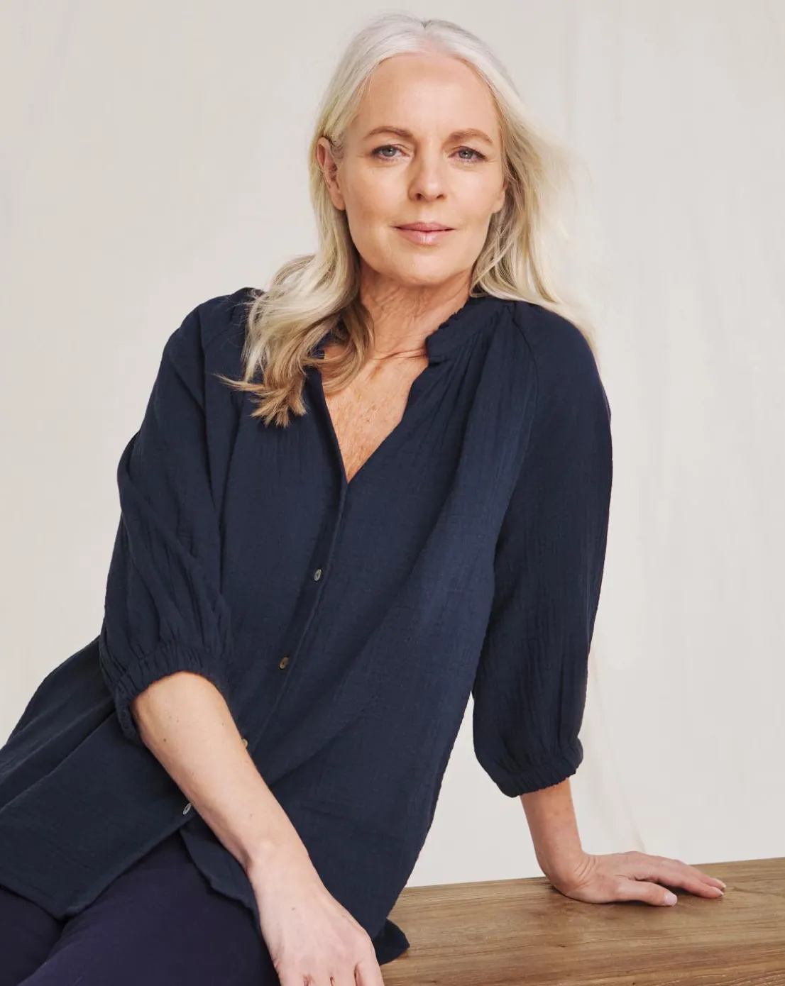 The perfect addition to your wardrobe our Julipa cheesecloth blouse, perfect for everyday dressing. Featuring soft cotton cheesecloth fabric, button down front, three quarter sleeves, frill neckline detail.