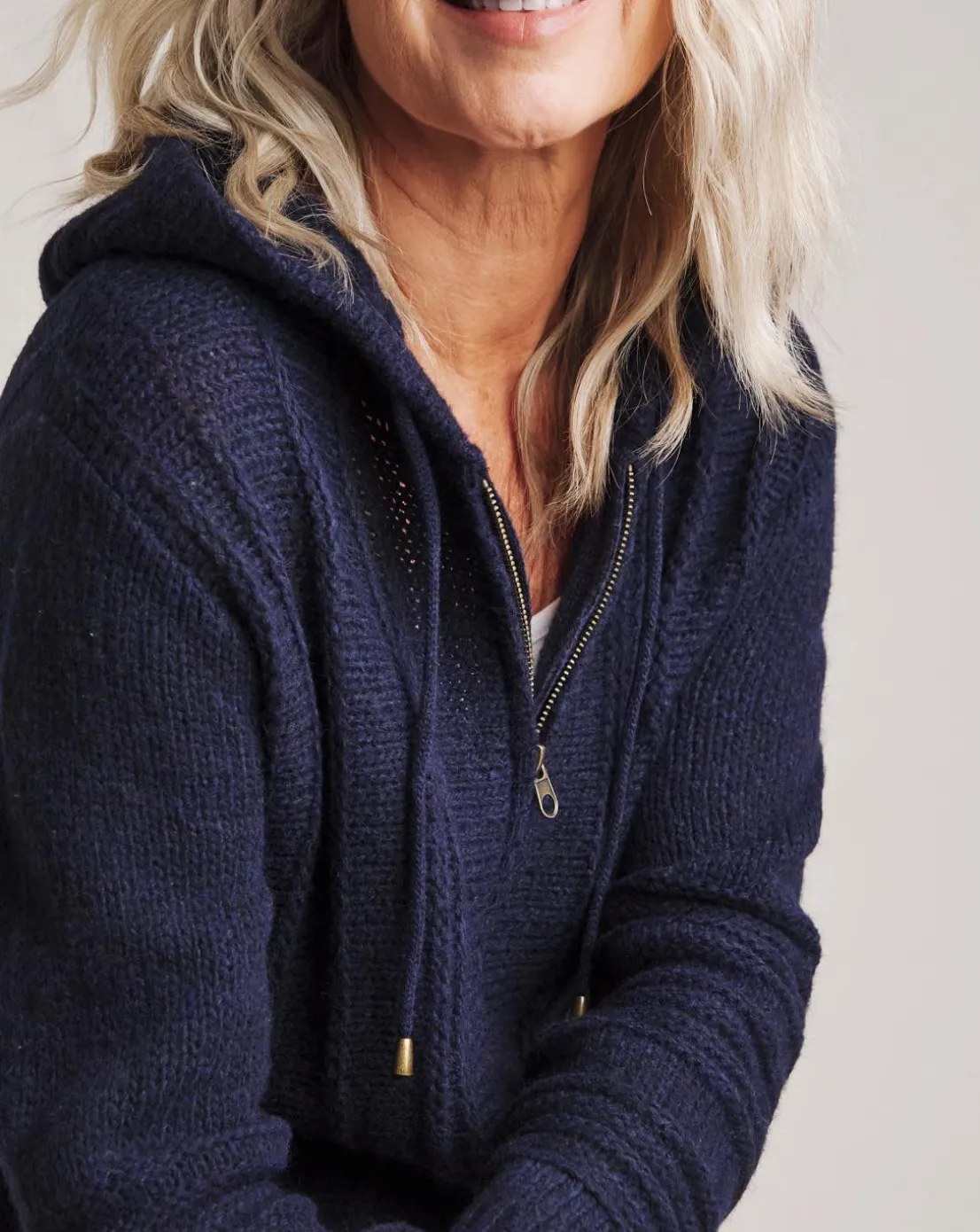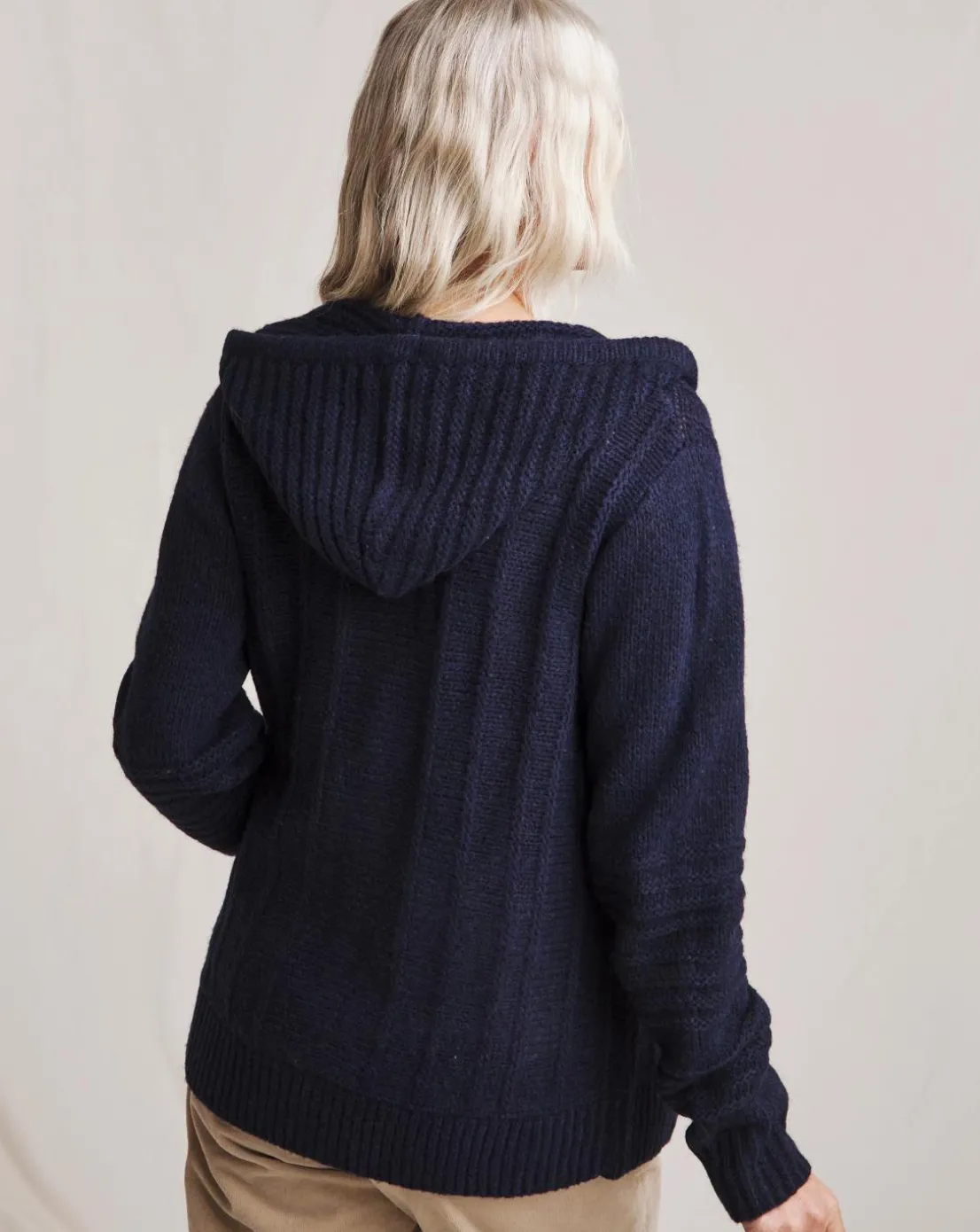 This cable knit cardigan features a zip up fastening, cuffed sleeves and a cosy hood, the perfect transitional piece to add to your wardrobe.