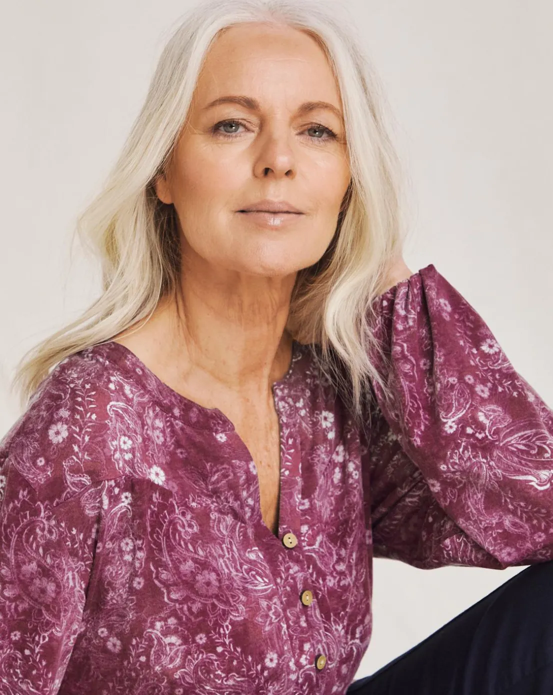 Your favourite Julipa supersoft blouse is back, perfect for an everyday look. Featuring soft jersey fabric, gorgeous print, notch neckline, three quarter sleeves with elasticated cuffs.