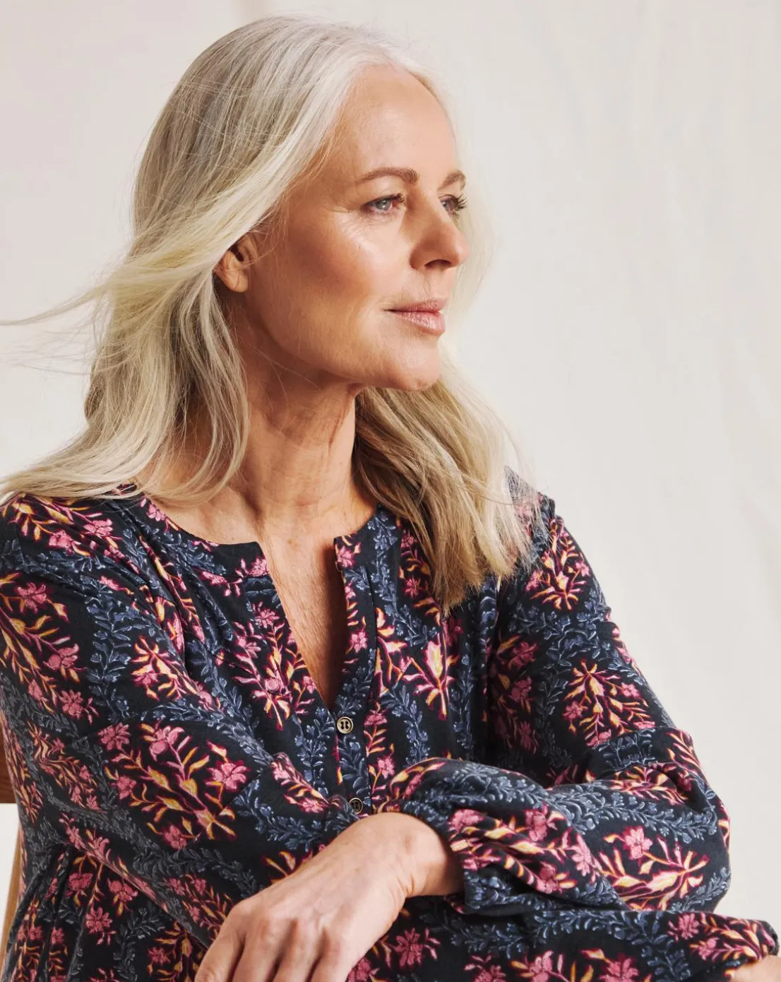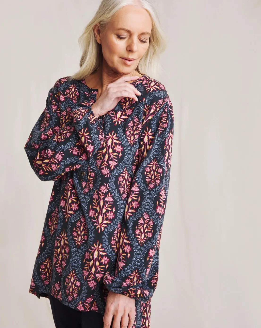 Your favourite Julipa supersoft blouse is back, perfect for an everyday look. Featuring soft jersey fabric, gorgeous print, notch neckline, three quarter sleeves with elasticated cuffs.