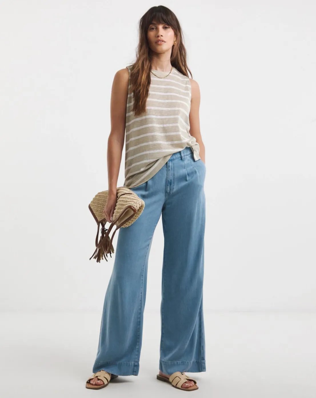 The perfect summer jean! Crafted in 100% Lyocell, this jean features a super soft, drapey denim fabric, relaxed silhouette, elasticated back and classic jean pocketing.