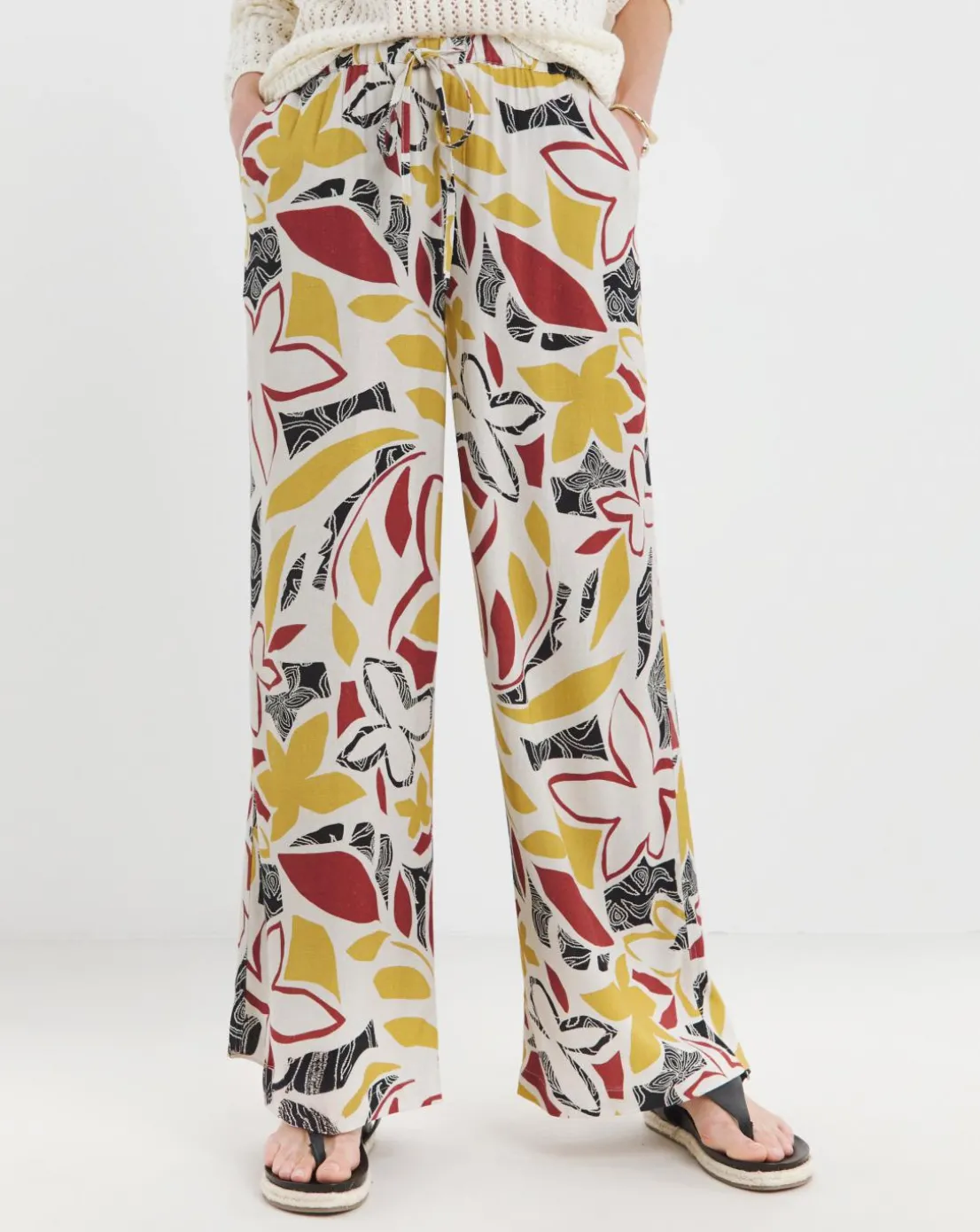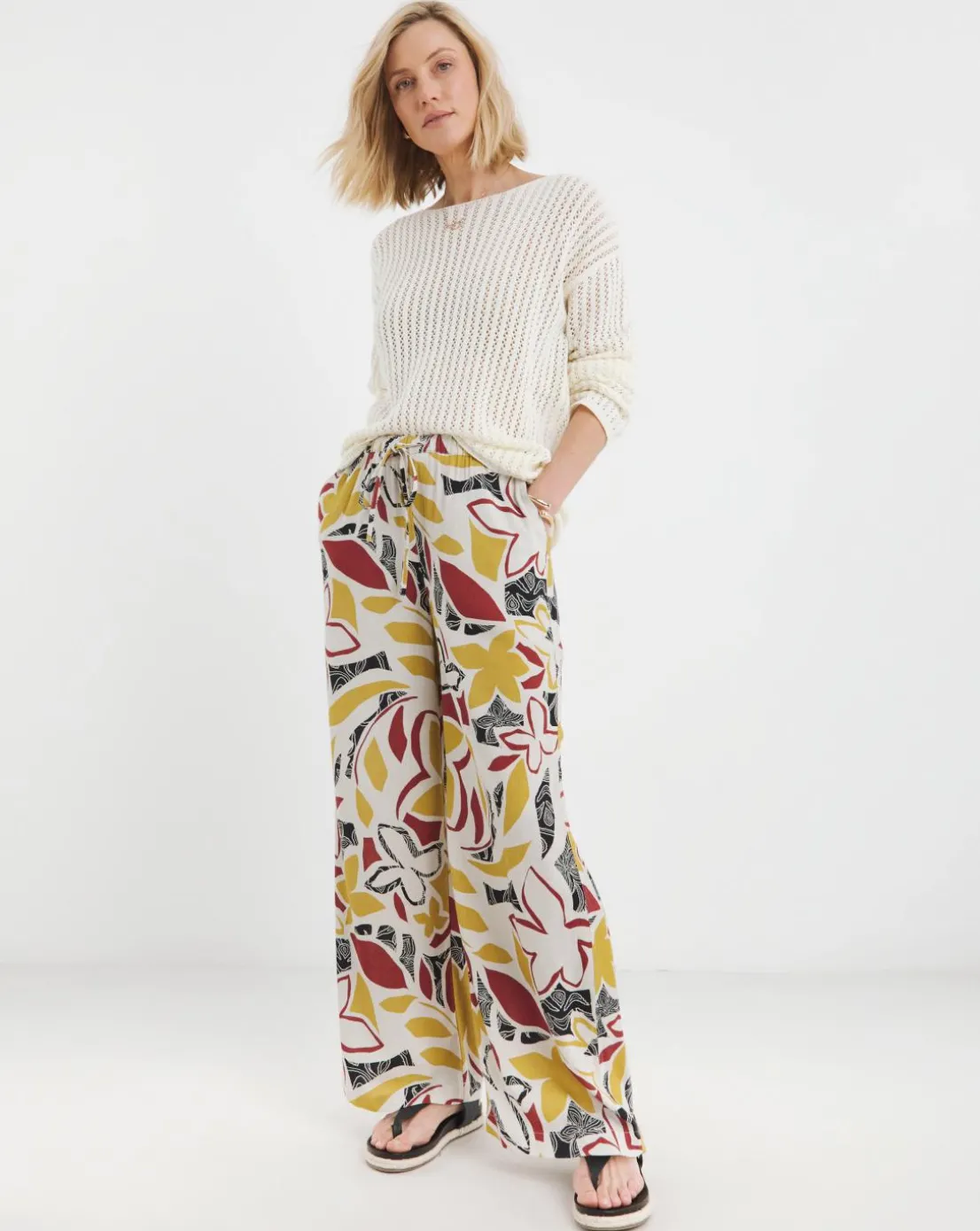 These trousers are the perfect comfortable staple with an easy to wear elasticated waistband and drawstring ties. Featuring pockets and a fashionable wide leg.