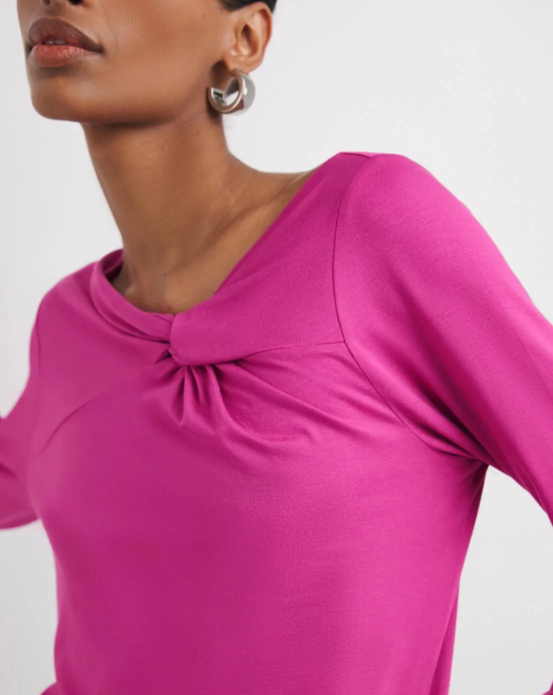 Magenta Twist Asymmetric Neck Long Sleeve Top