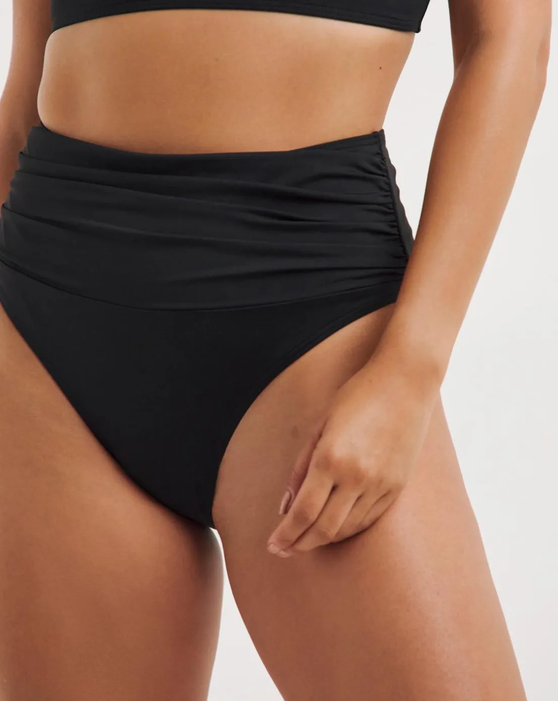 Feel great in these high waisted twisted front lose up to an inch bikini bottoms. From our Magisculpt collection, these briefs help shape and contour your curves with our control technology. In a premium power mesh fabric, these briefs should be a staple in your swimwear wardrobe! Complete the look with our matching Bikini top.