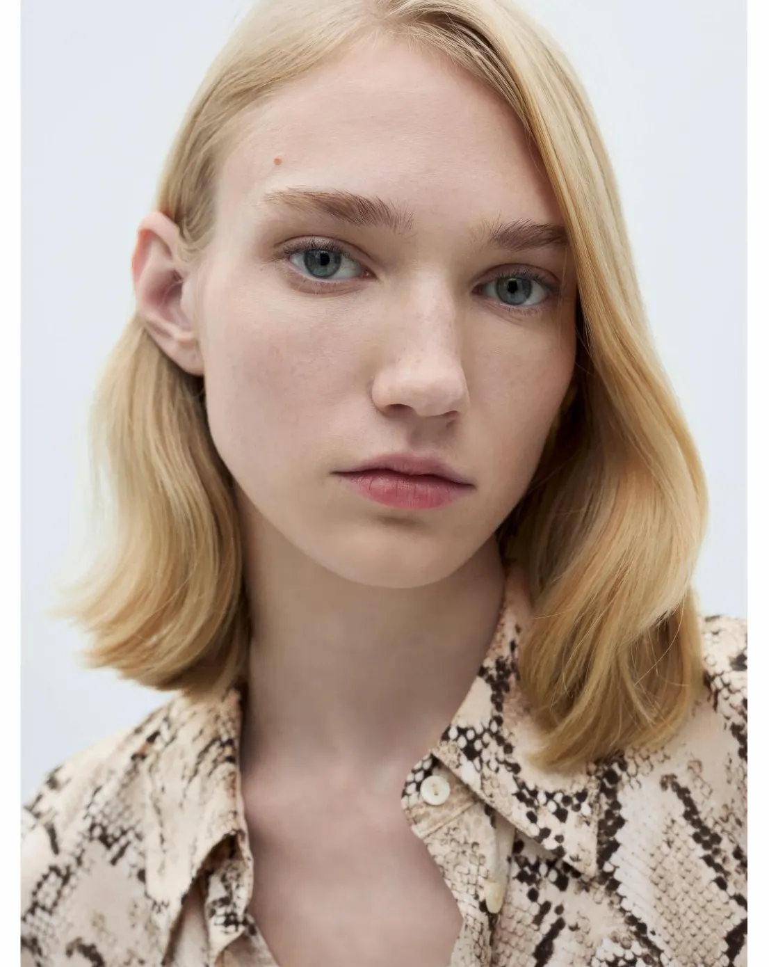 Long sleeve. Flowy fabric. Satin. Straight design. Stamped design. Shirt-style collar. Long buttoned sleeves. Button fastening on the front section. Light fabric. Front closure. Standard design. Regular fit.