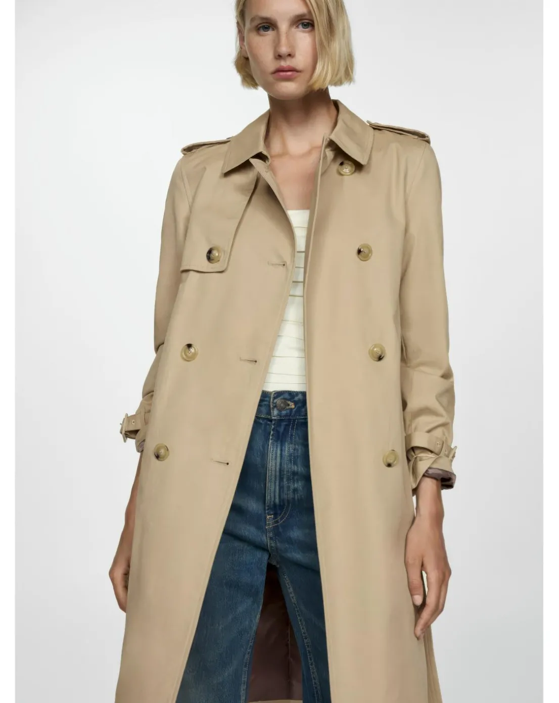 Smart, effortless and easy to wear. This trench coat from Mango gives plenty of coverage with its longer length hem. Featuring a neat collared neckline, it is made using pure cotton for a soft breathable feel.