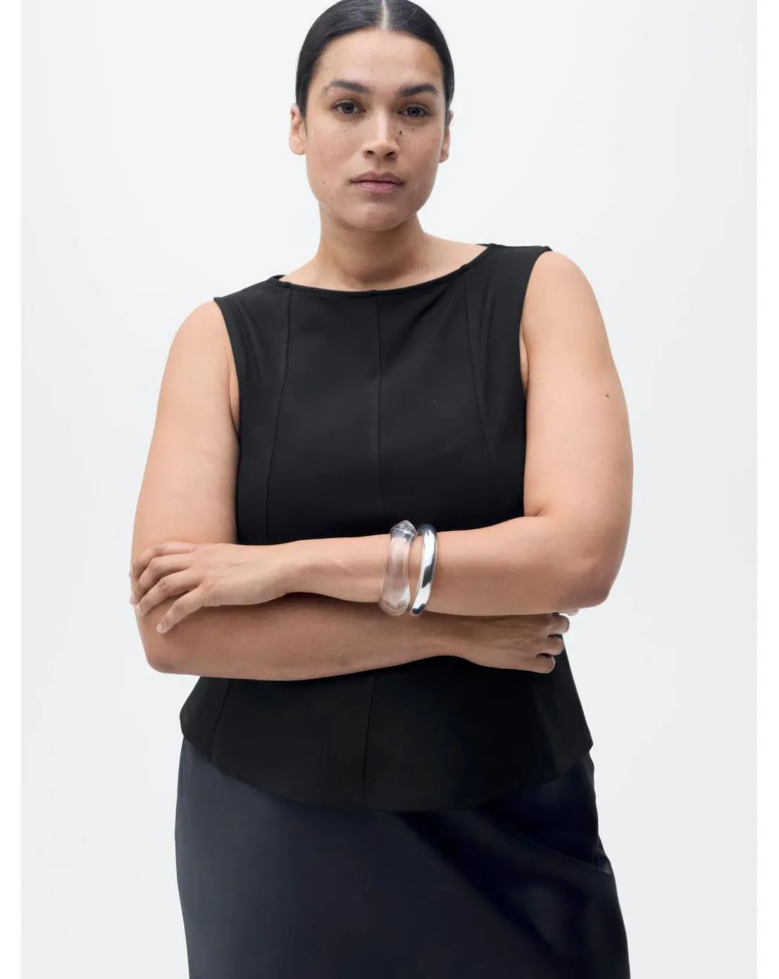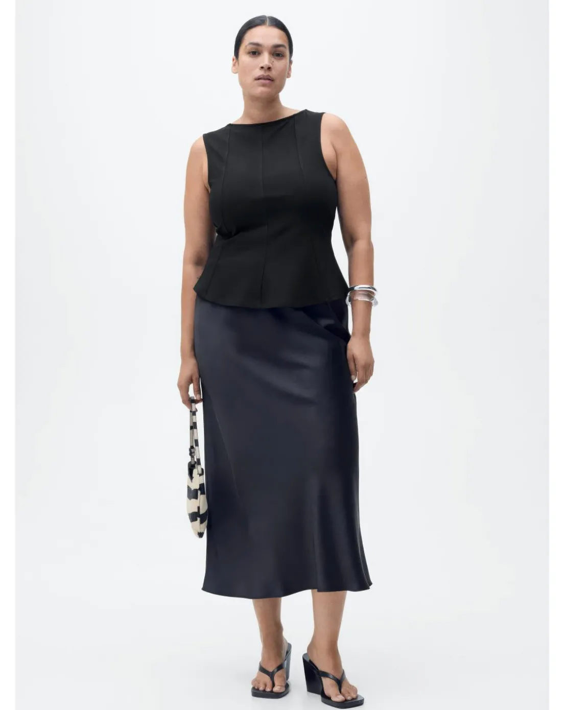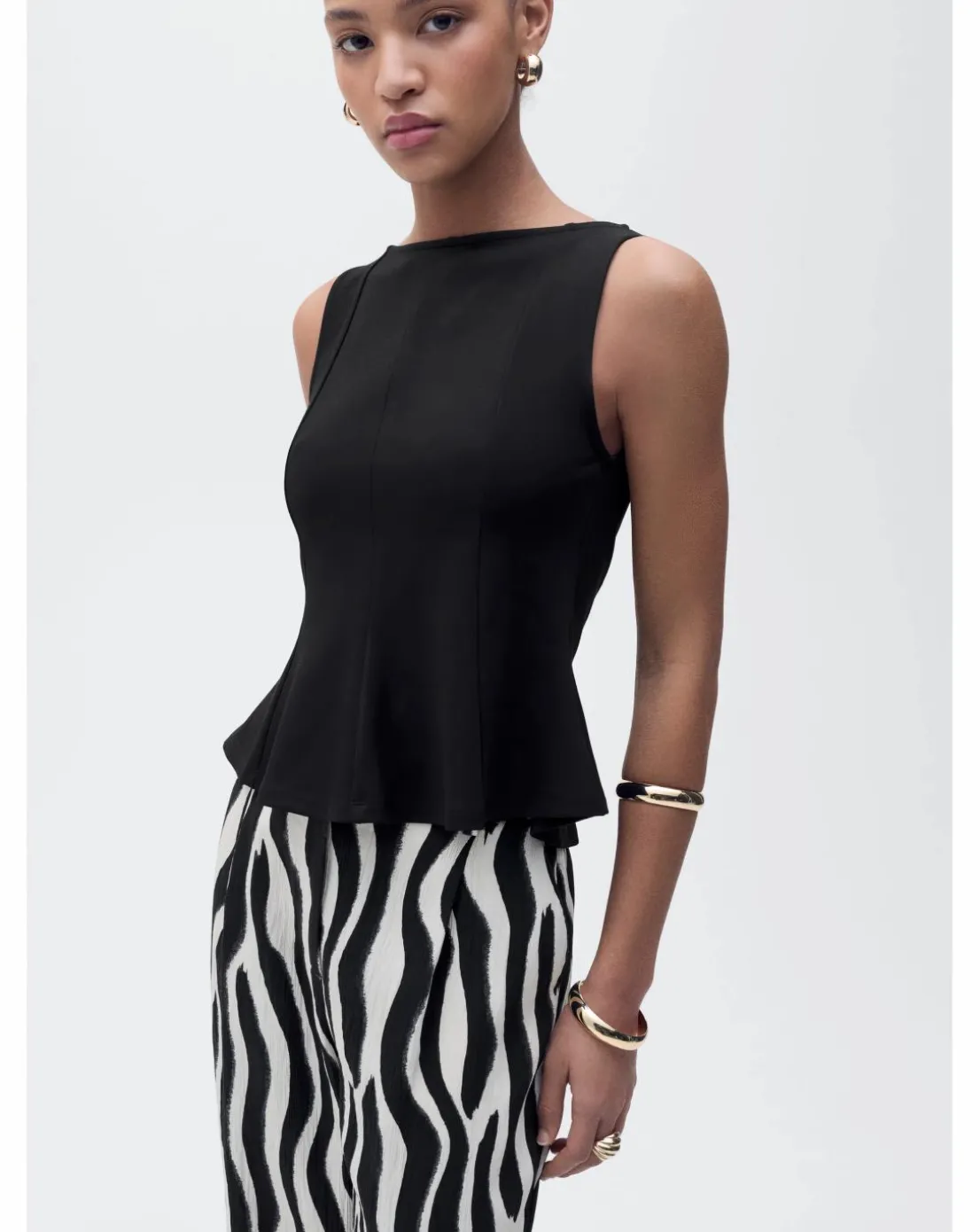Embrace effortless elegance with this sleeveless top from Mango. Designed with a flattering boat neck, it offers a sophisticated silhouette that’s perfect for any occasion. The flared hem adds a feminine touch, creating a breezy, relaxed fit. With no fastening, this top is easy to slip on and perfect for layering or wearing on its own. A versatile and stylish piece, its a must-have addition to your wardrobe for both casual and dressier looks.