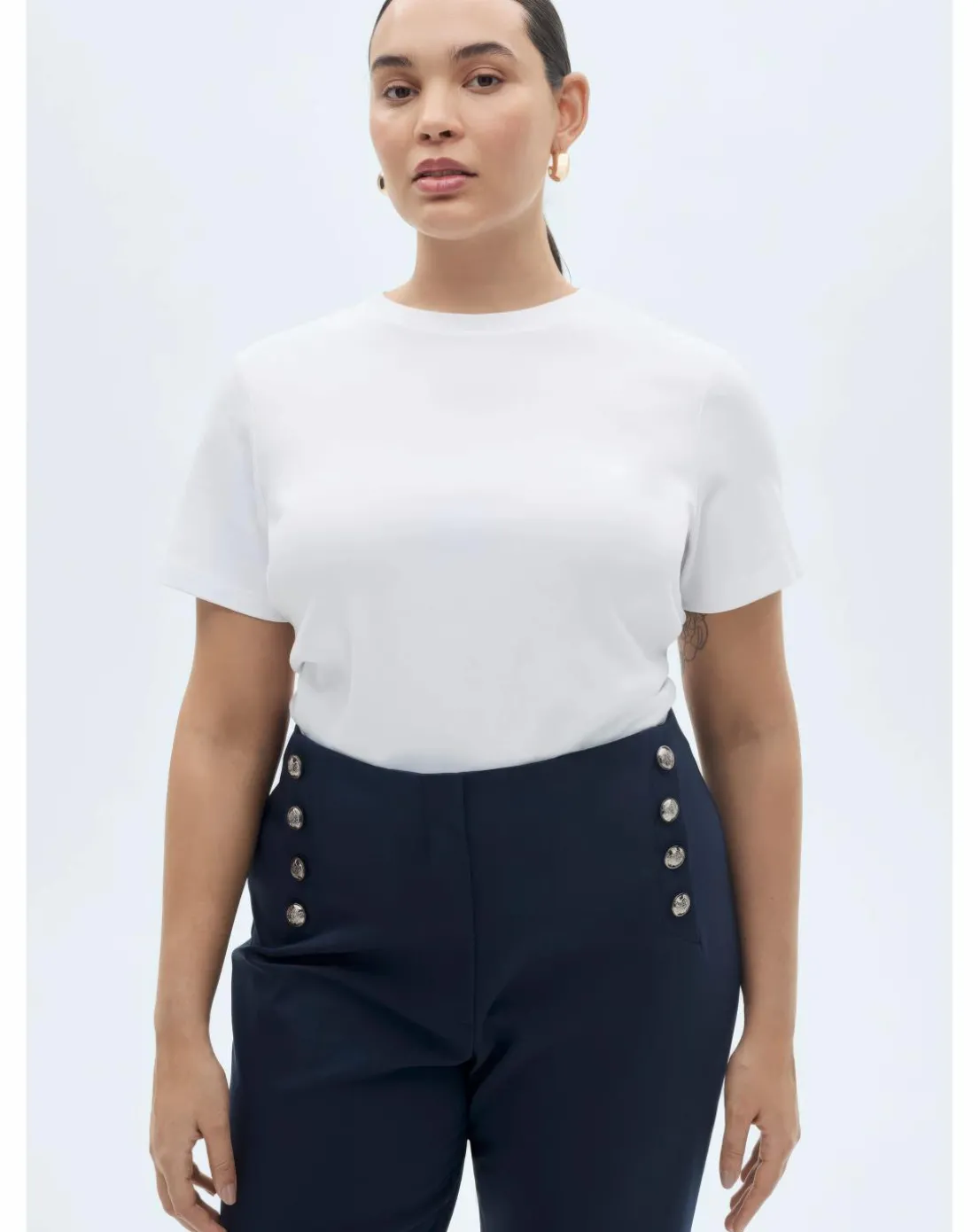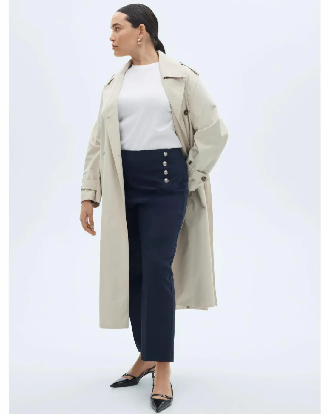 This chic piece from Mango is crafted from a comfortable cotton-blend fabric, offering both style and practicality. Featuring a long, straight, and cropped design, it sits at a medium waist for a flattering fit. Two side pockets add functionality, while the concealed button, hook, and zip fastening provide a sleek, streamlined look. The jewel-effect buttons add a touch of elegance and sophistication, making this piece perfect for both casual and dressed-up occasions. A timeless addition to any wardrobe, blending modern design with classic charm.