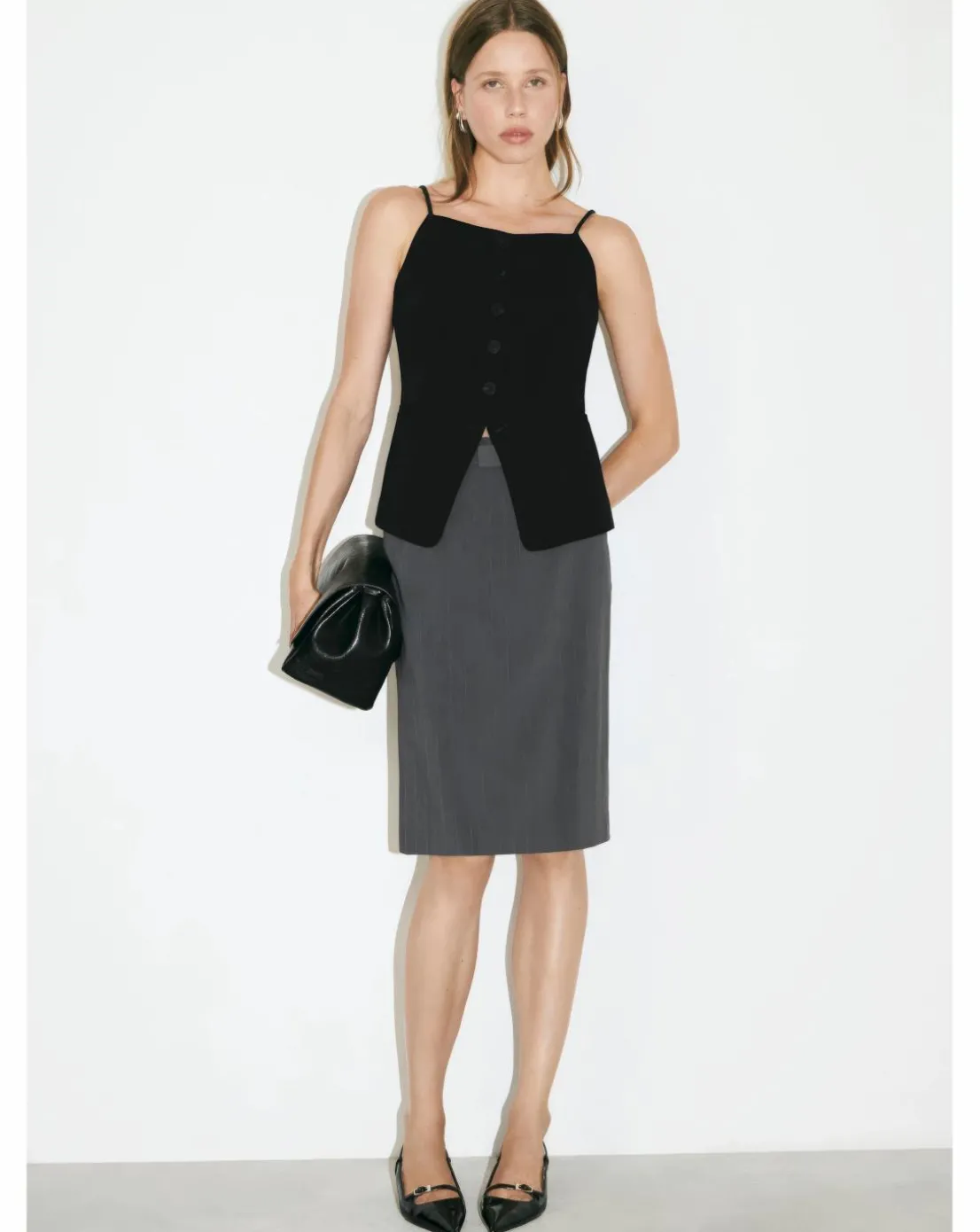 A total staple, this simple top from Mango in a soft fabric blend with a high square neckline and sleeveless design.