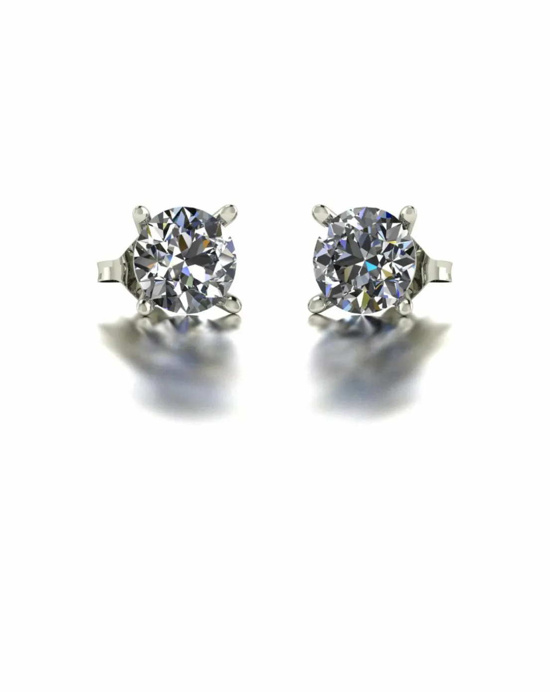 - Features two 6.5mm round brilliant Moissanite hand set into a 4 claw setting with 9ct white gold pins and scrolls. The integrated sparkle will simply take your breath away