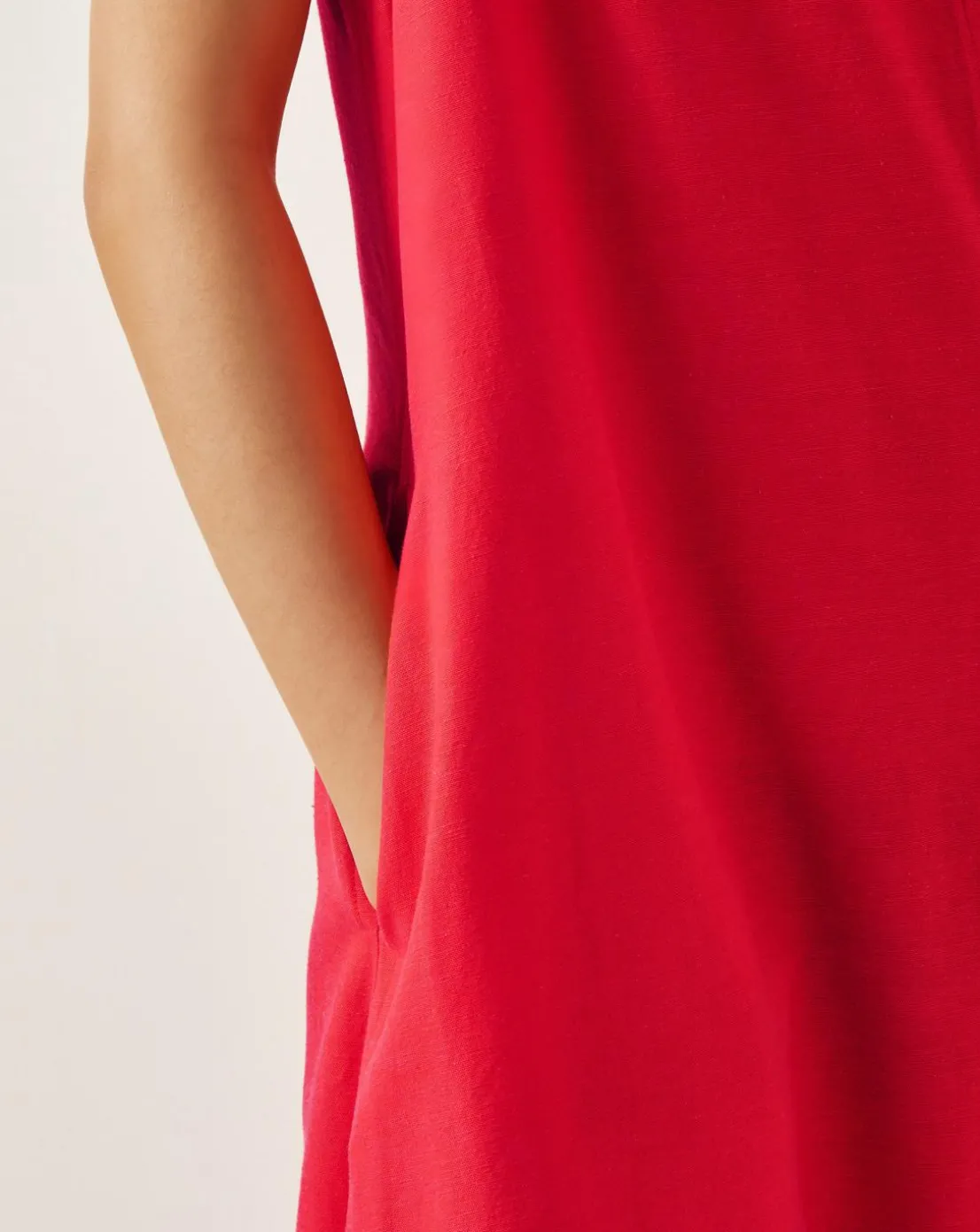 - The magic words: It has pockets. Turn up the brightness with this timeless silhouette for your summer wardrobe. Soaked in a dreamy coral hue, this sleeveless midi dress boasts an A-line finish for a touch of statement flair.