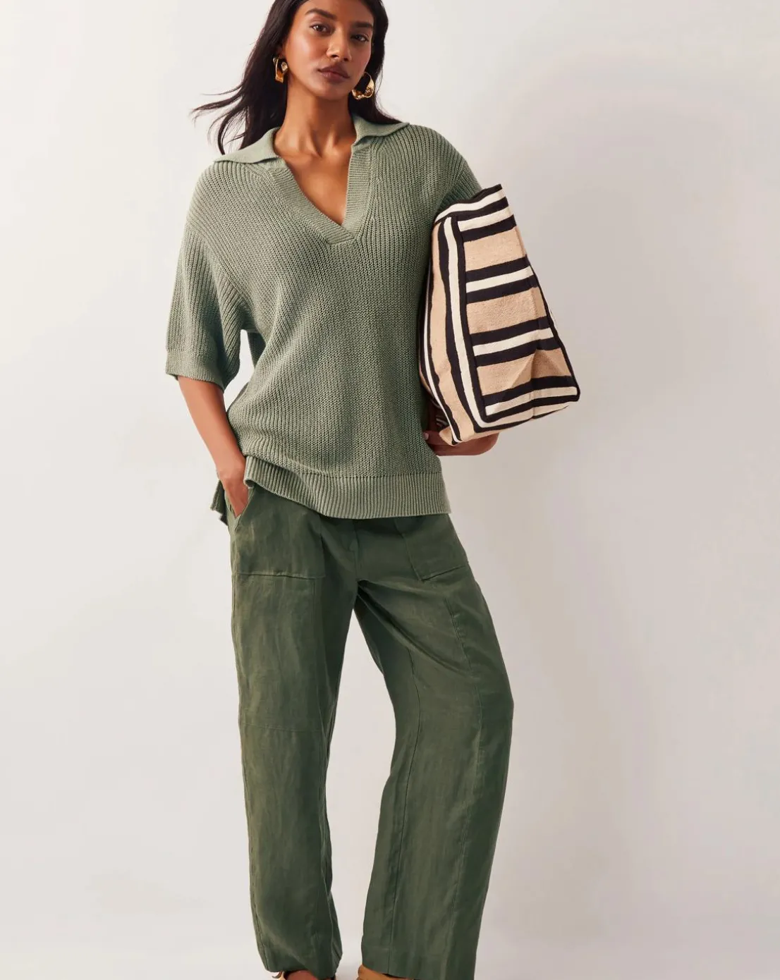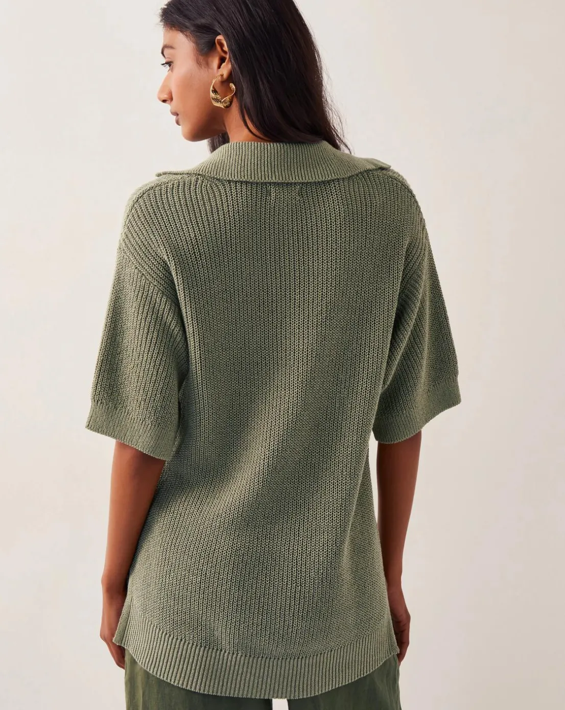 - Jump(er) to it. Slouchy yet smart, this jumper is a great transitional piece to style throughout the seasons. It’s designed with a collared neckline, v-front and short sleeves in soft khaki yarns.