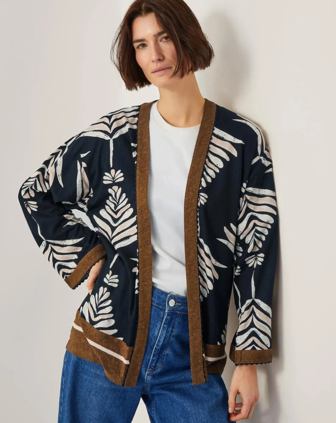 - Bohemia looks good on you. Lightweight and perfect for summer, this jacket is made from a soft linen and viscose blend and patterned with abstract leaf motifs. Designed with an open front for a slouchy finish.