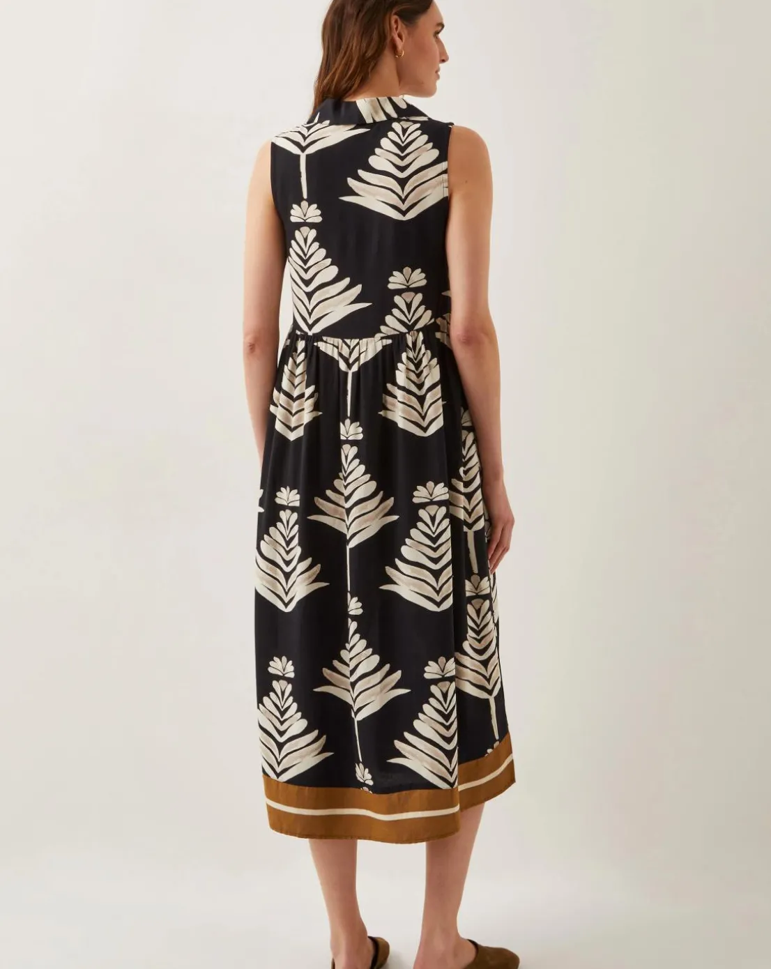 - Monsoon Pamela Sleeveless Leaf Print Midi Dress