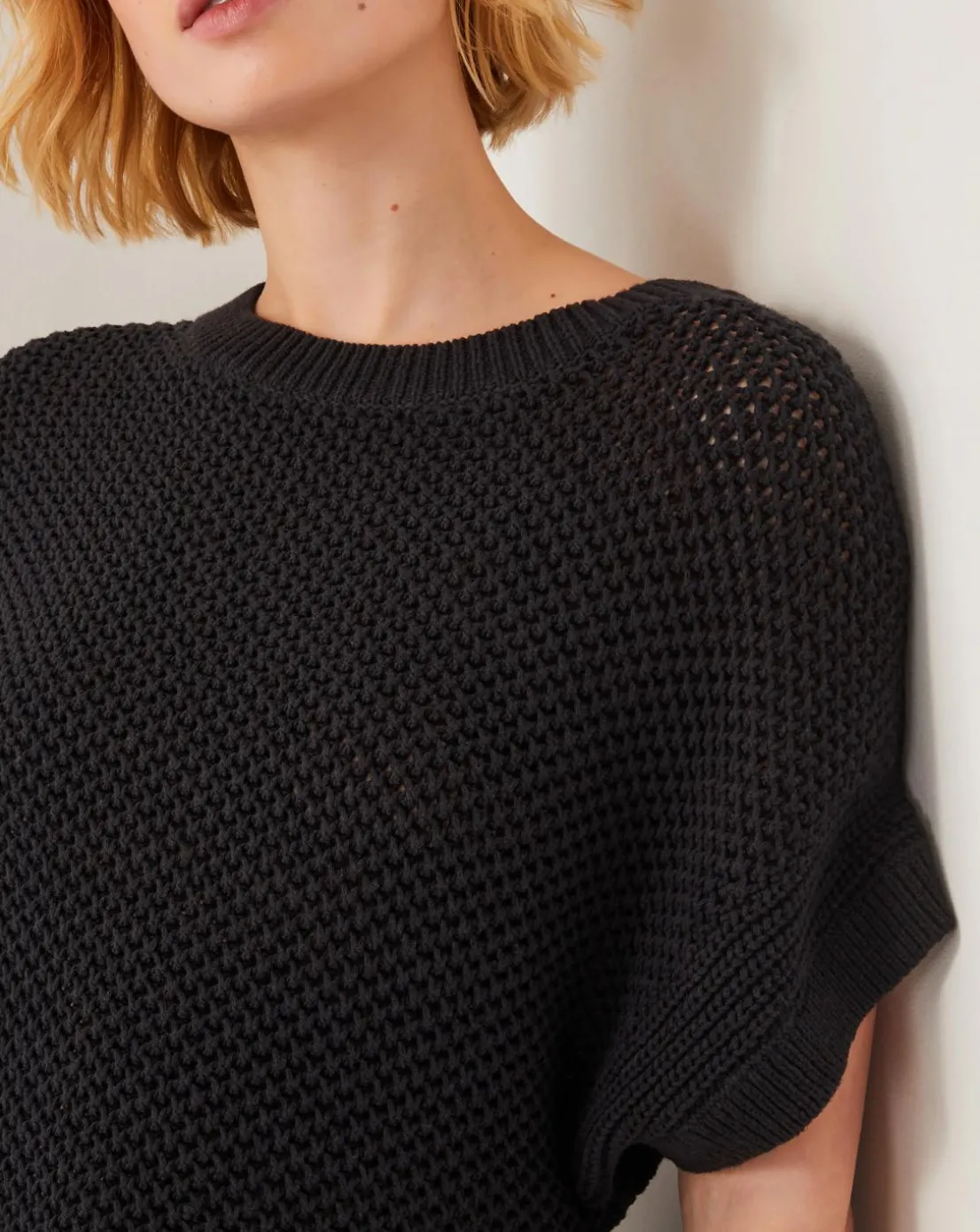- For when the air is crisp. A versatile wardrobe staple you can style throughout the seasons, this chunky knit is designed with short sleeves and a slouchy fit for ultimate cosiness.