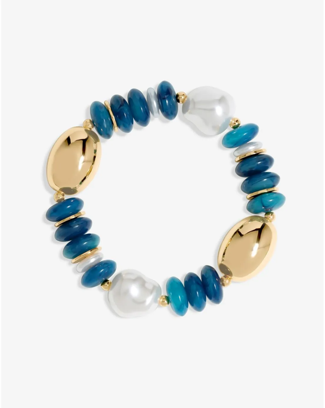- Mood Gold Blue Bead Statement Stretch Bracelet