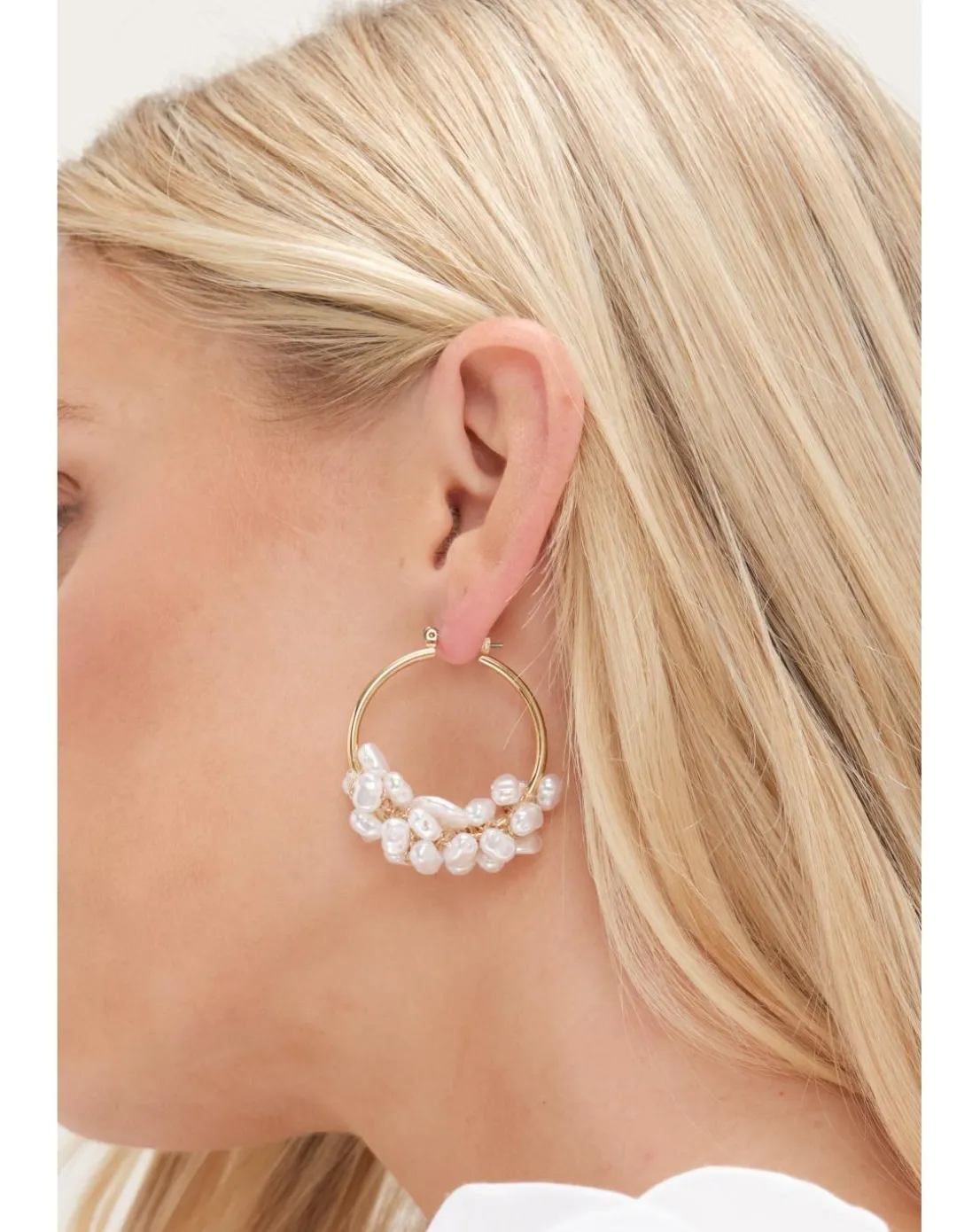 - Our Mood Gold Pearl Cluster Hoop Earrings are a must have this season, designed with imitation pearls, these Earrings are perfect for Summer. Wear solo or layer up with other pieces to suit your style.