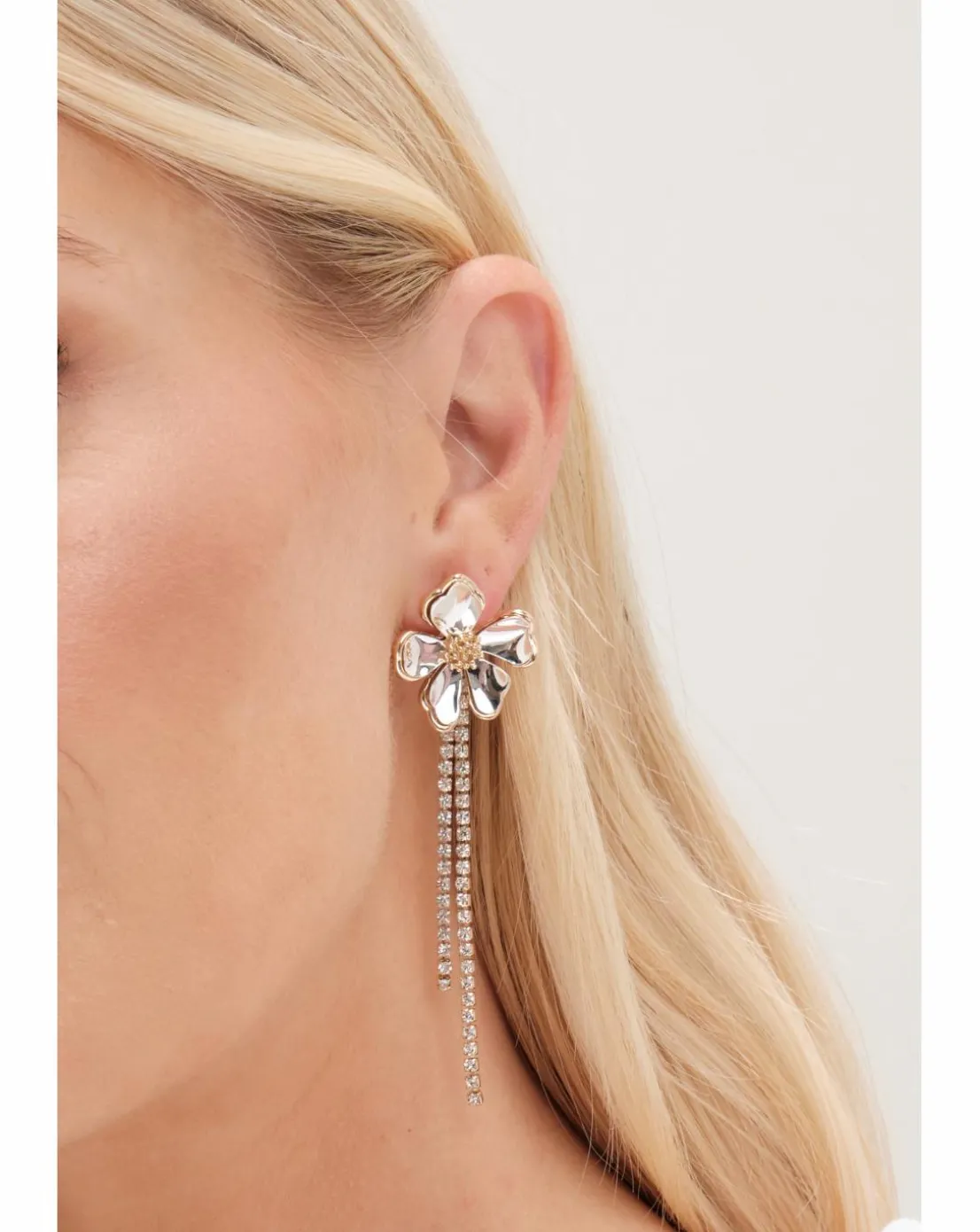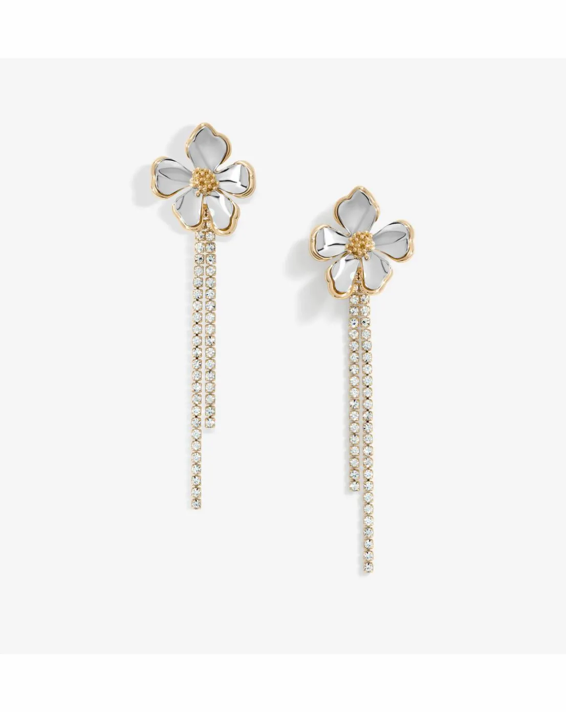 - Mood Two Tone Flower Cupchain Drop Earrings