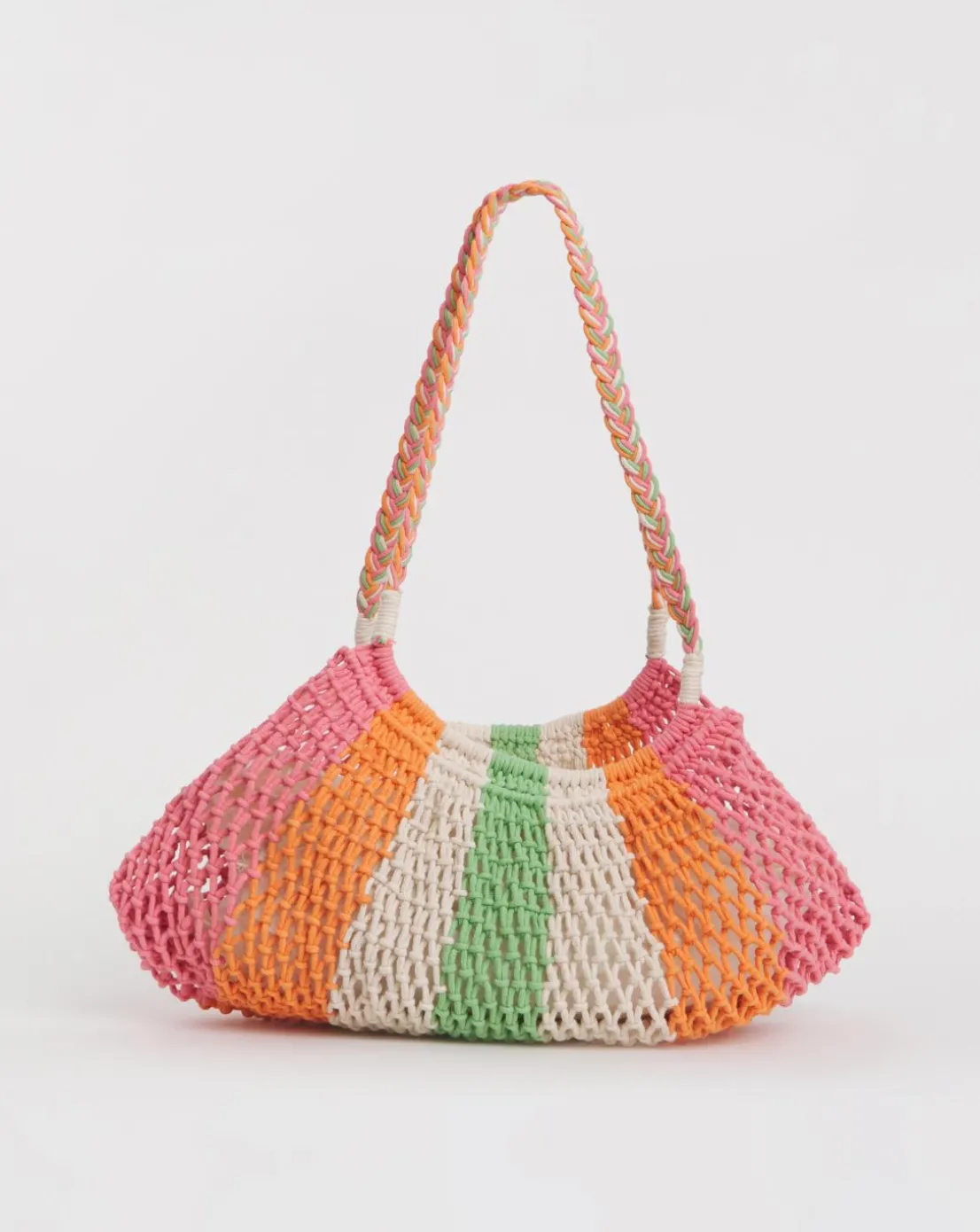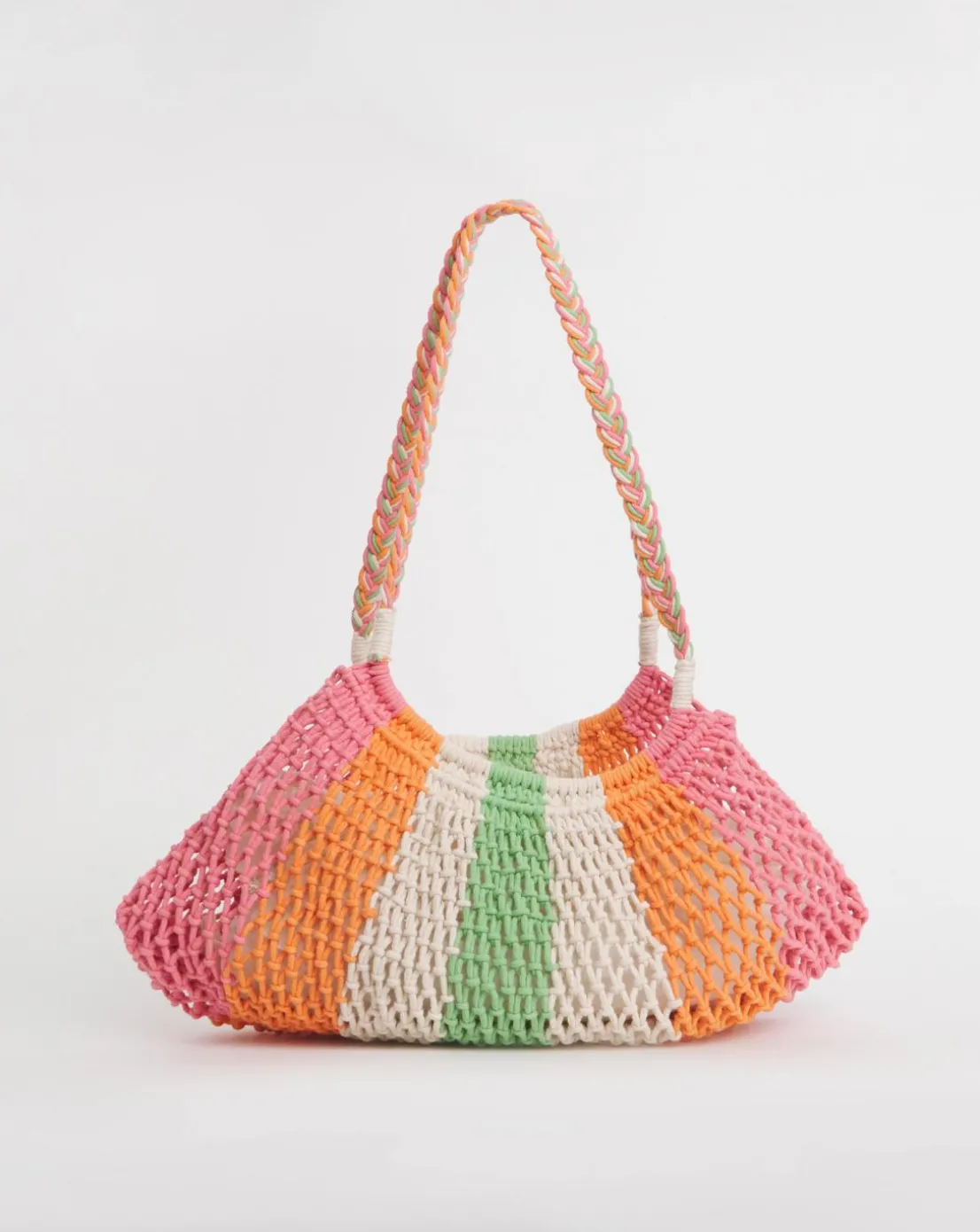 Brighten up your look with our multi-stripe crochet shopper bag! Complete in an intricte multi-stripe crochet detail with a secure cotton lining to keep your belonings safe. This bag is also perfectly packable and ideal for travel! Fold it into your suitcase without taking up room or weight.