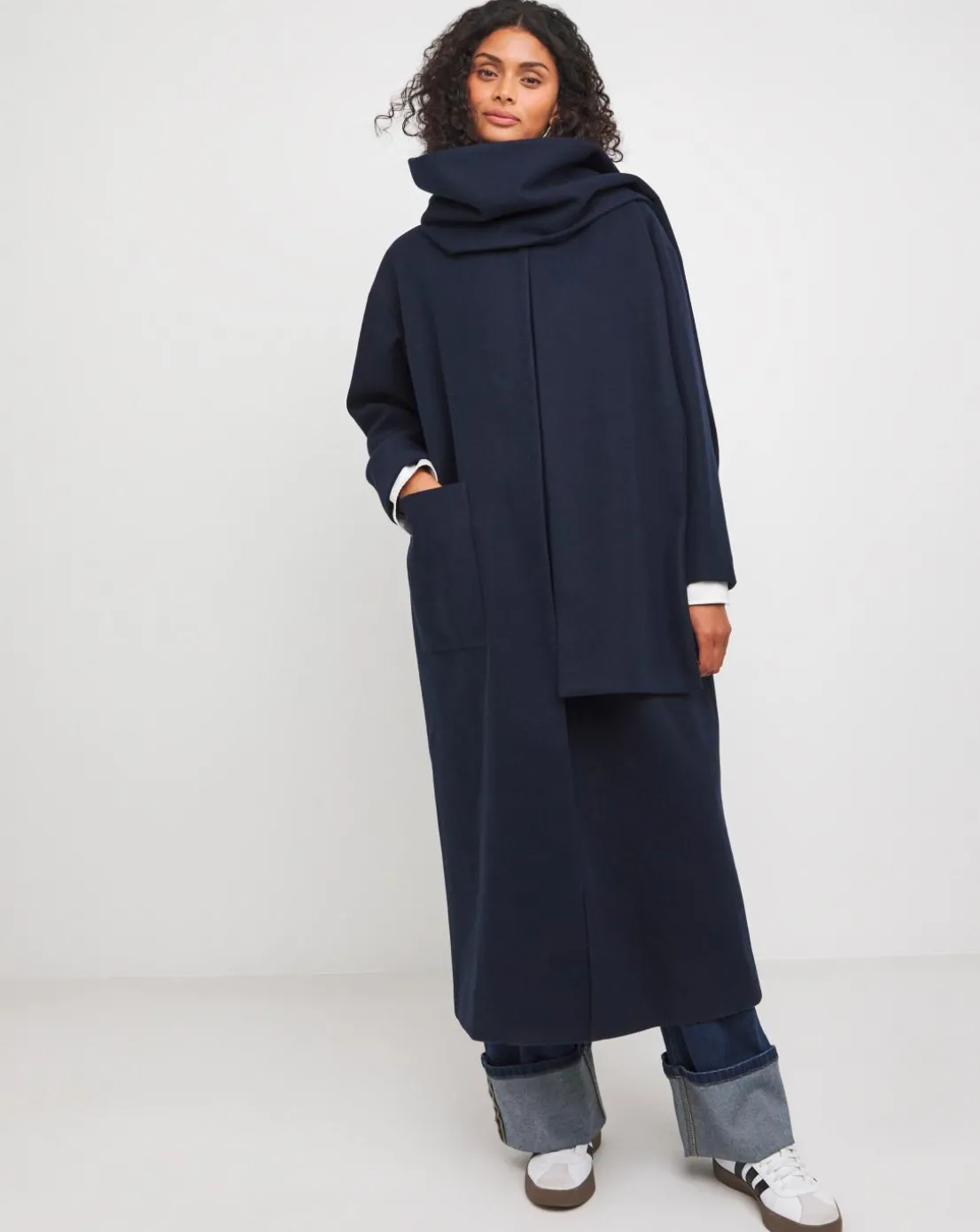 Navy Longline Scarf Coat