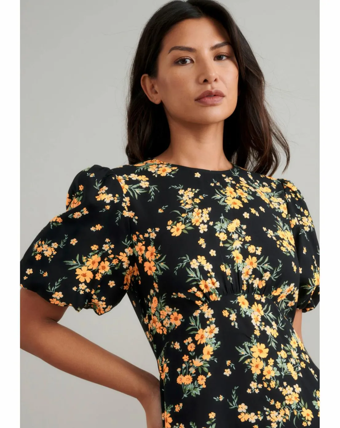 Nobody’s Child Benita Midi Dress Yellow and Black Ditsy Floral