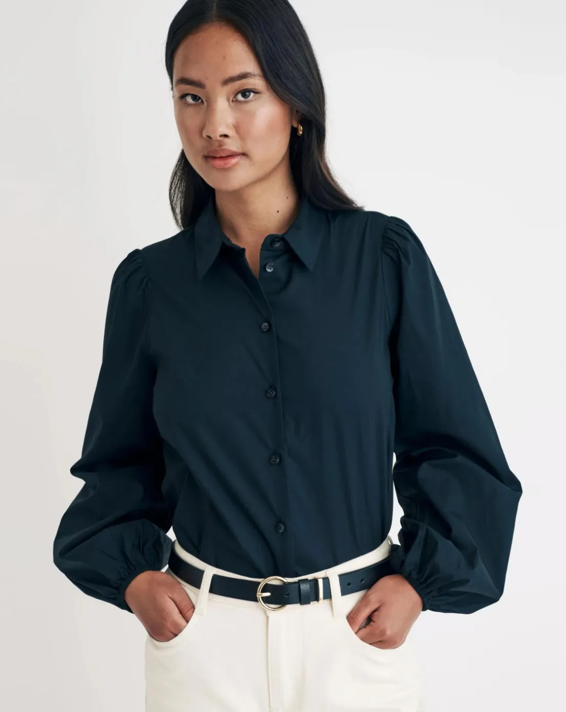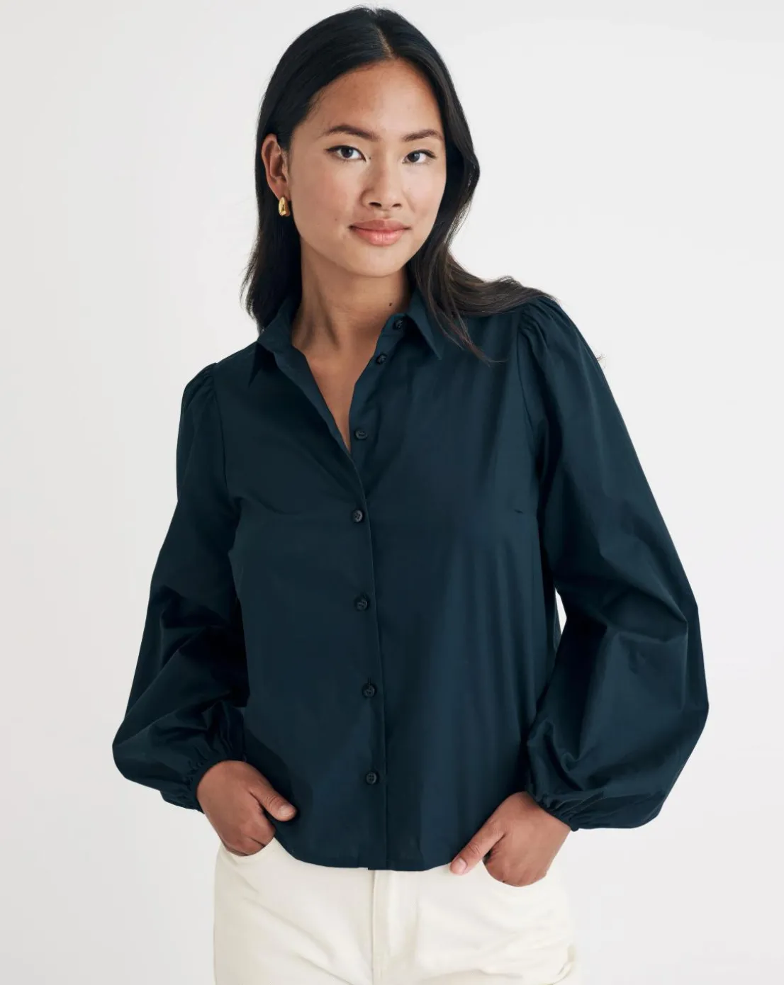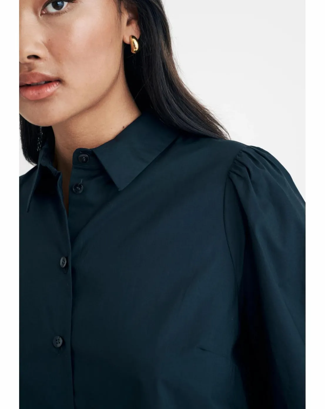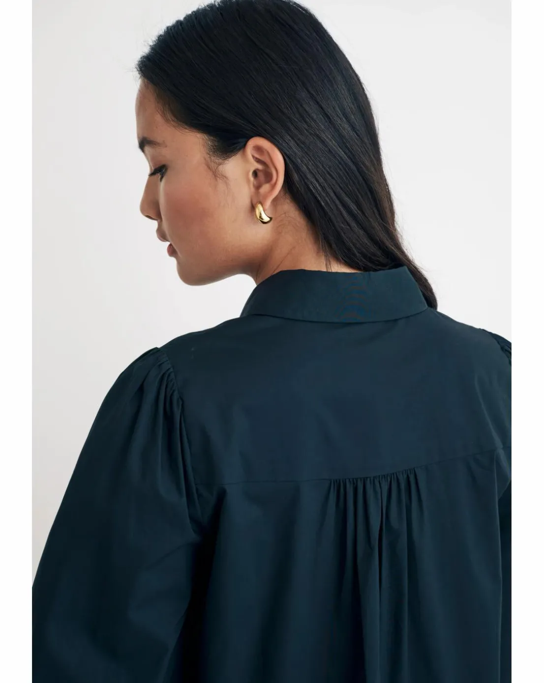 Della in black. Made entirely from organic cotton, this oversized shirt is what you need for everyday wear. Featuring the classic collar and button front, you can’t go wrong. Style yours with denim of the season.