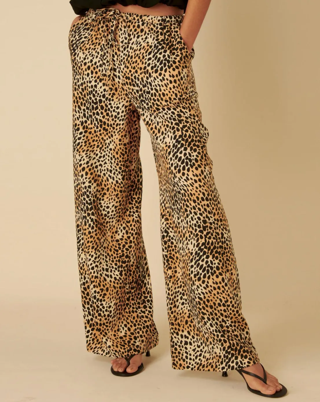 Everyone needs a pair of wide leg trousers in their life. In a statement leopard print design, they are sure to be worn on rotation. A soft drawcord waist adds to the comfortable fit, plus they have got pockets. Also good: we have added pockets. Dress yours up or down, depending on your mood.