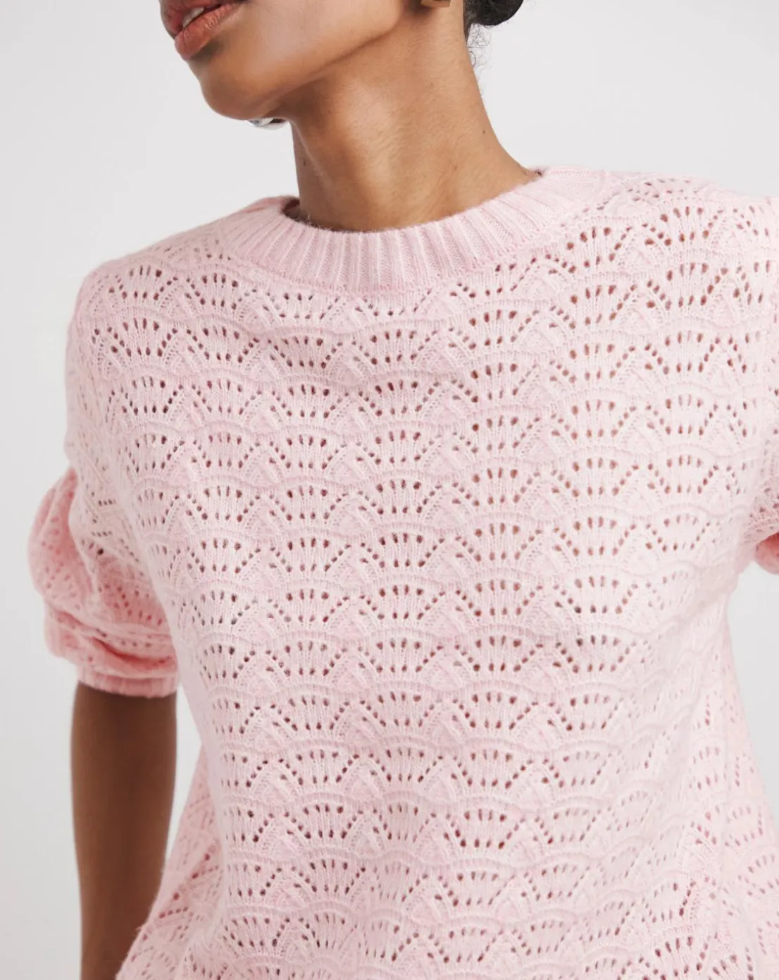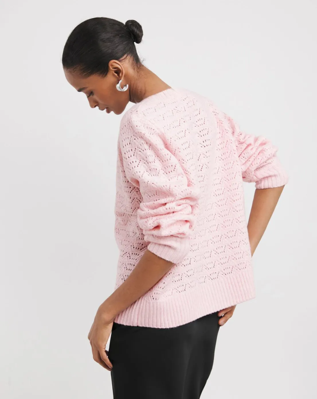 Our pink crew neck jumper will make a great addition to your new season wardrobe. Featuring long sleeves, open stitch detailing and a relaxed fit.