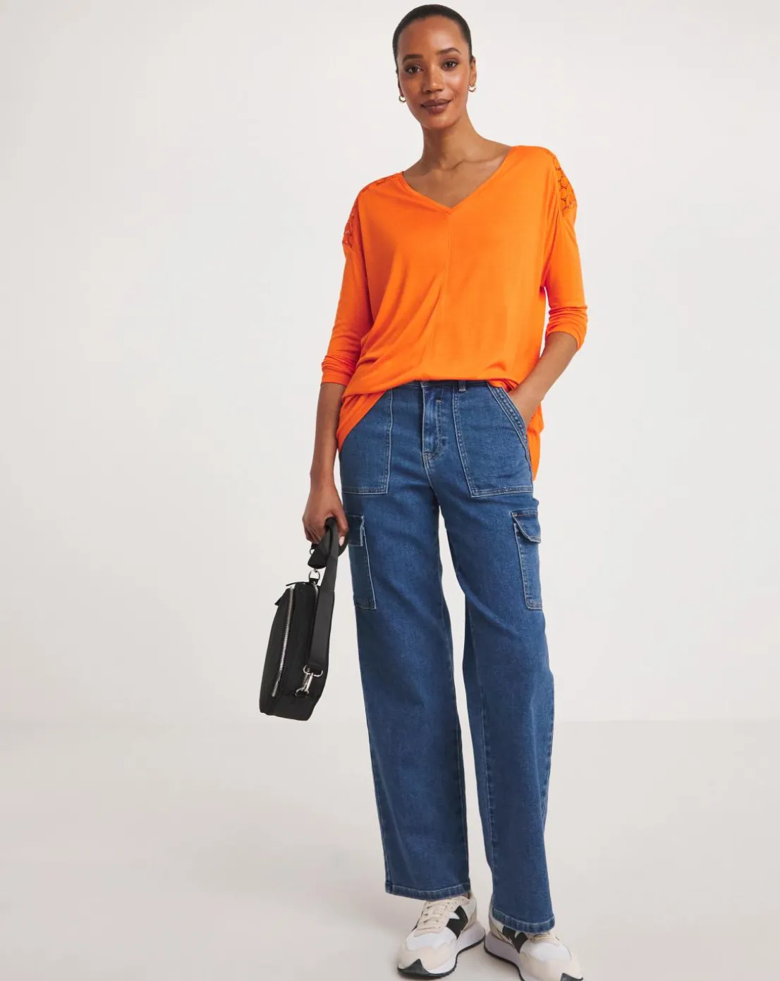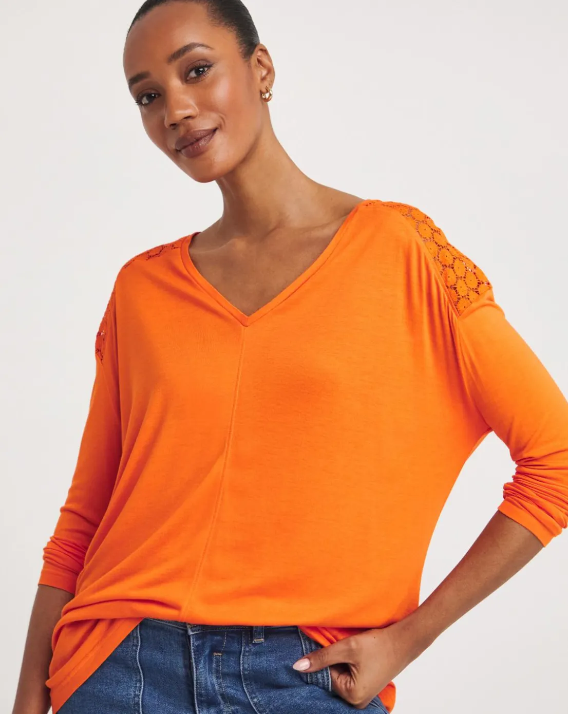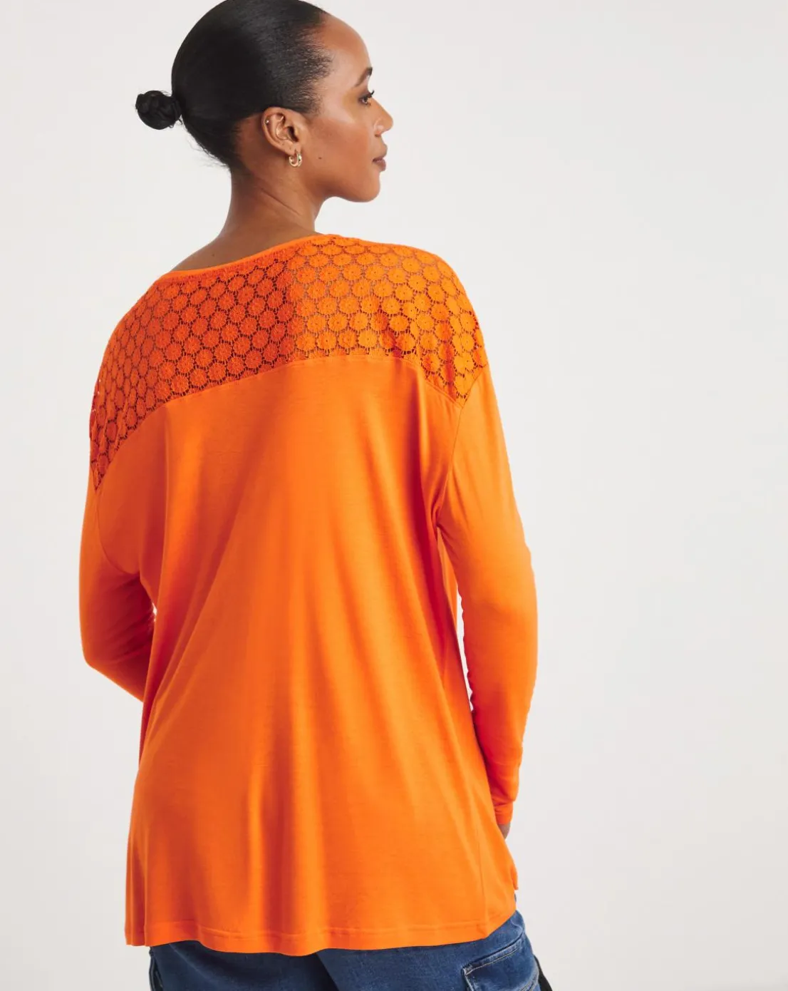 Be the first to review “Orange V Neck Lace Back Long Sleeve Top” Cancel reply