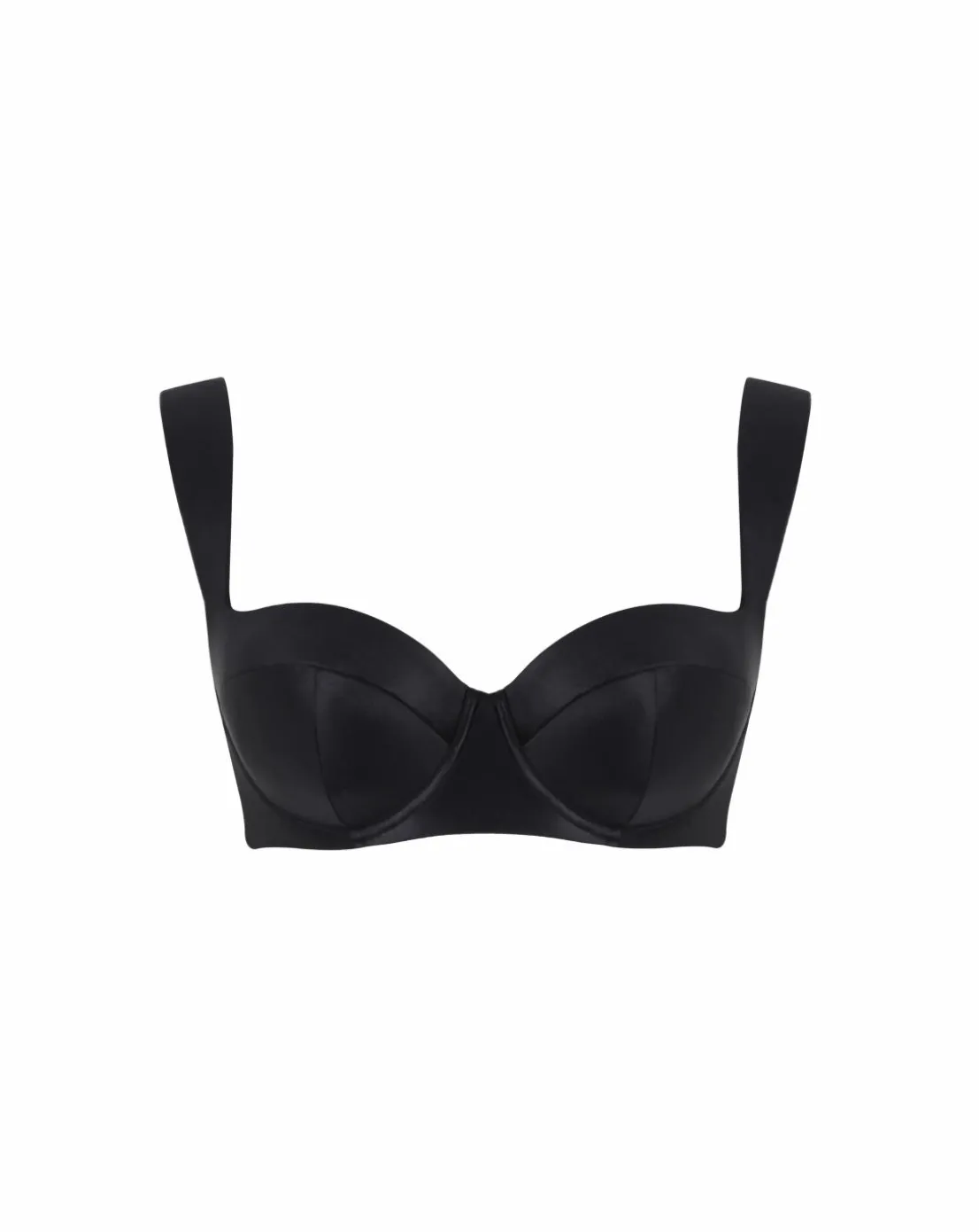- Three section padded balcony style bikini top featuring luxurious Italian high sheen fabric. Wide set, padded straps for a flattering balcony shape.