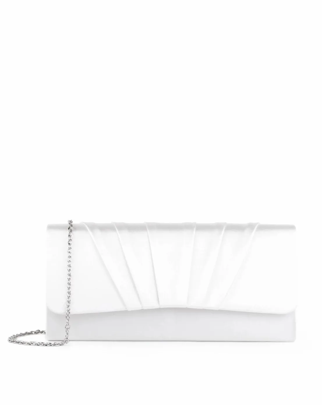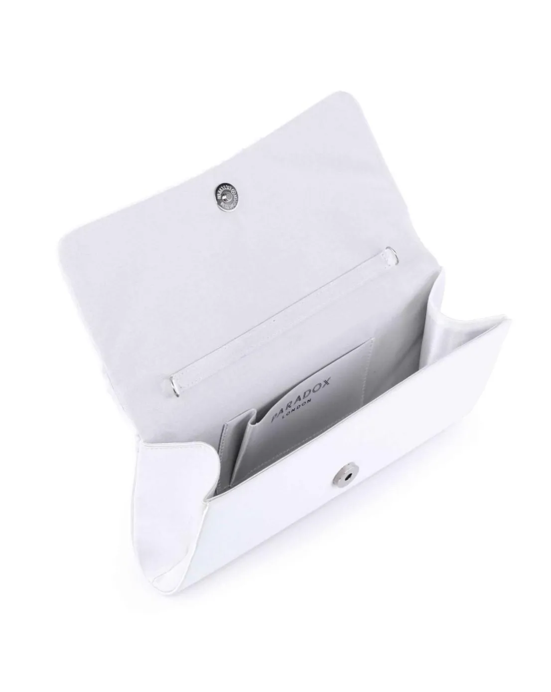 - Our ‘Darrah’ clutch bag by Paradox London, features delicate pleat detailing. There is enough room for all the essentials as well as having a detachable chain strap and has a magnetic fastening.
